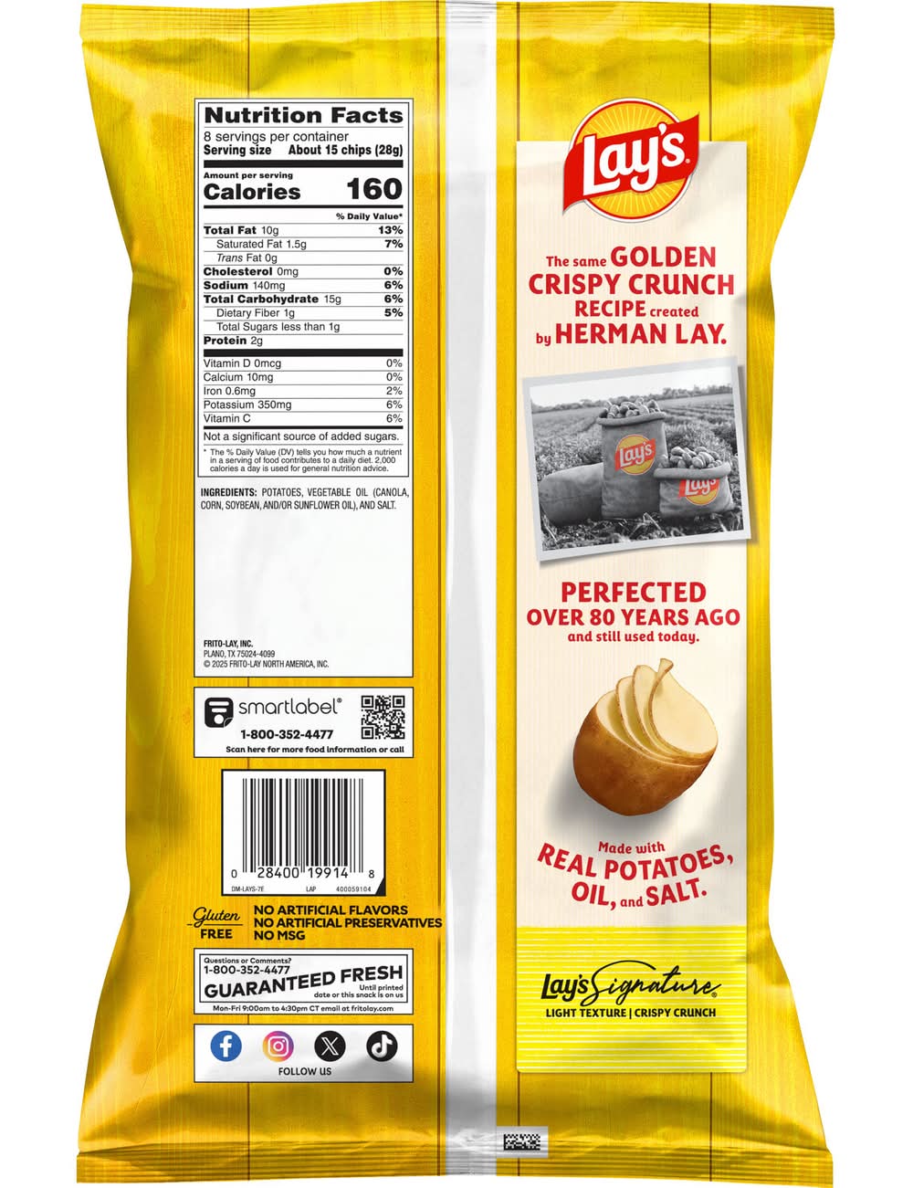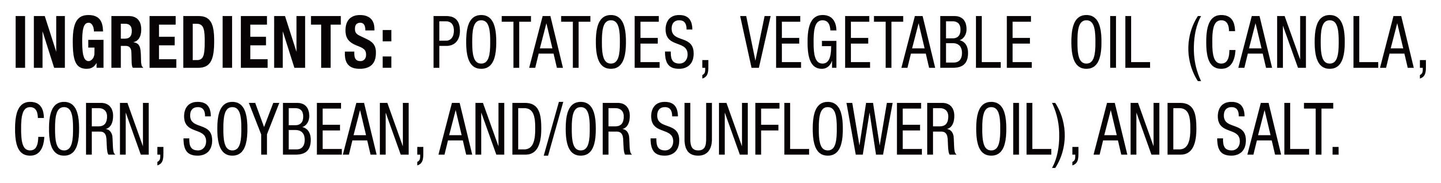 Ingredients: Potatoes, Vegetable Oil (Canola Corn Soybean and/or Sunflower Oil), and Salt Contains: Corn, Soybeans