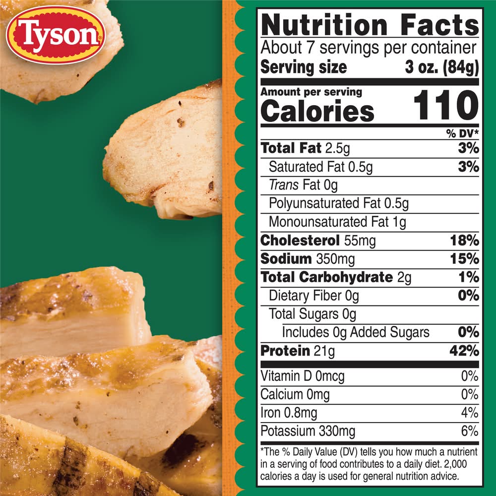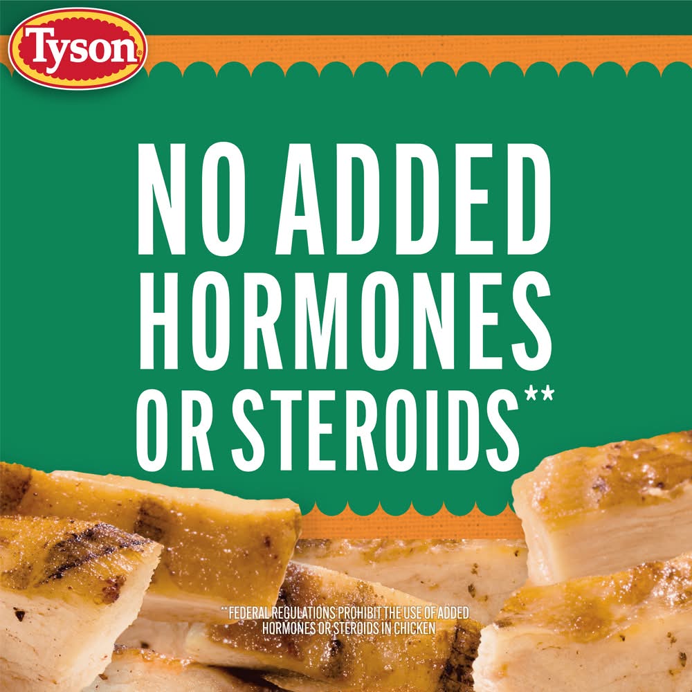 Boneless, skinless with rib meat, smoke flavor added. Raised with no added hormones or steroids (Federal regulations prohibit the use of added hormones or steroids in ). Fully cooked. Save time! Add to your favorite sauce or recipe instead of fresh poultry. Tyson Sales and Distribution, Inc., PO Box 2020, Springdale, AR, 72765-2020