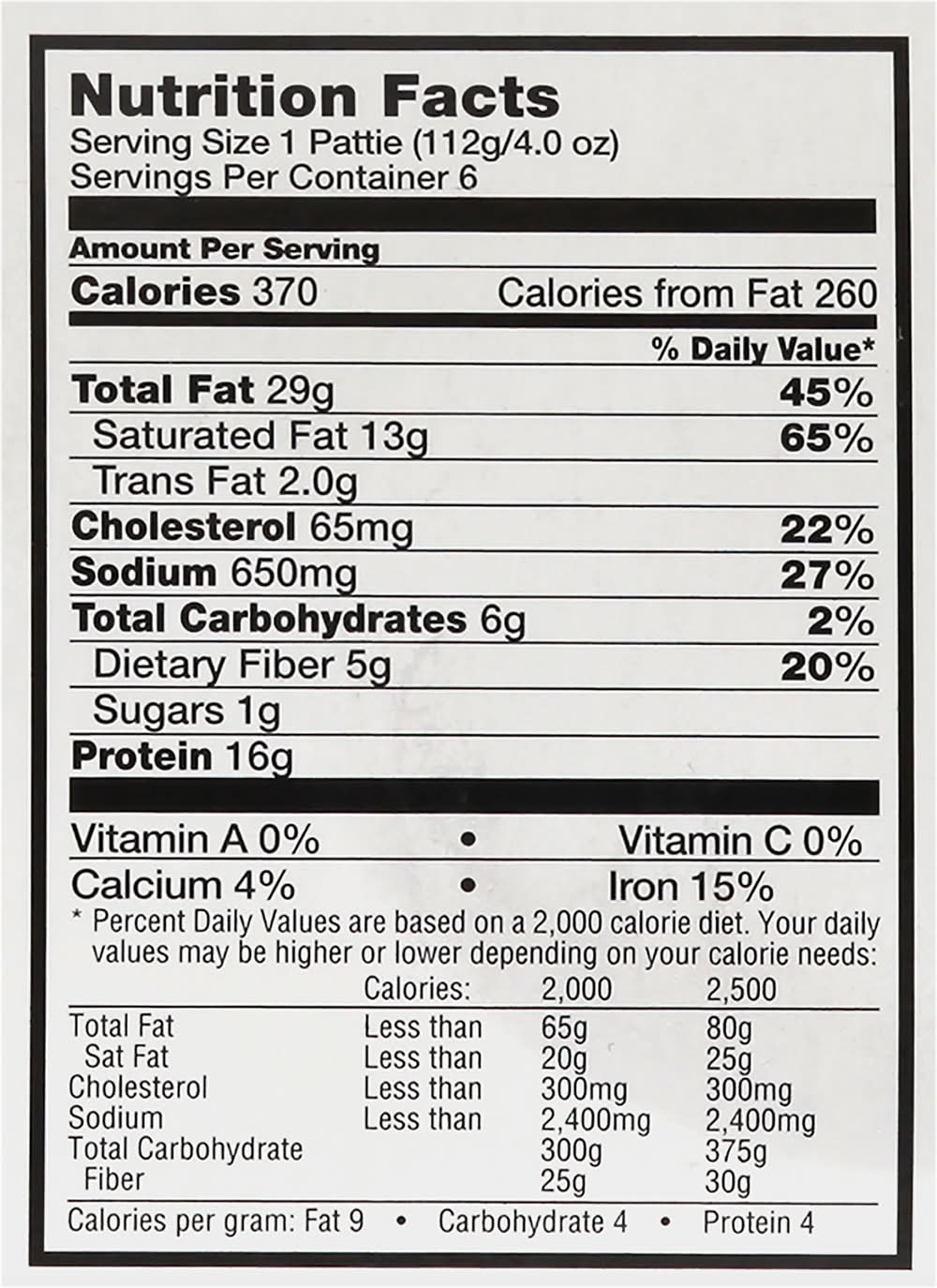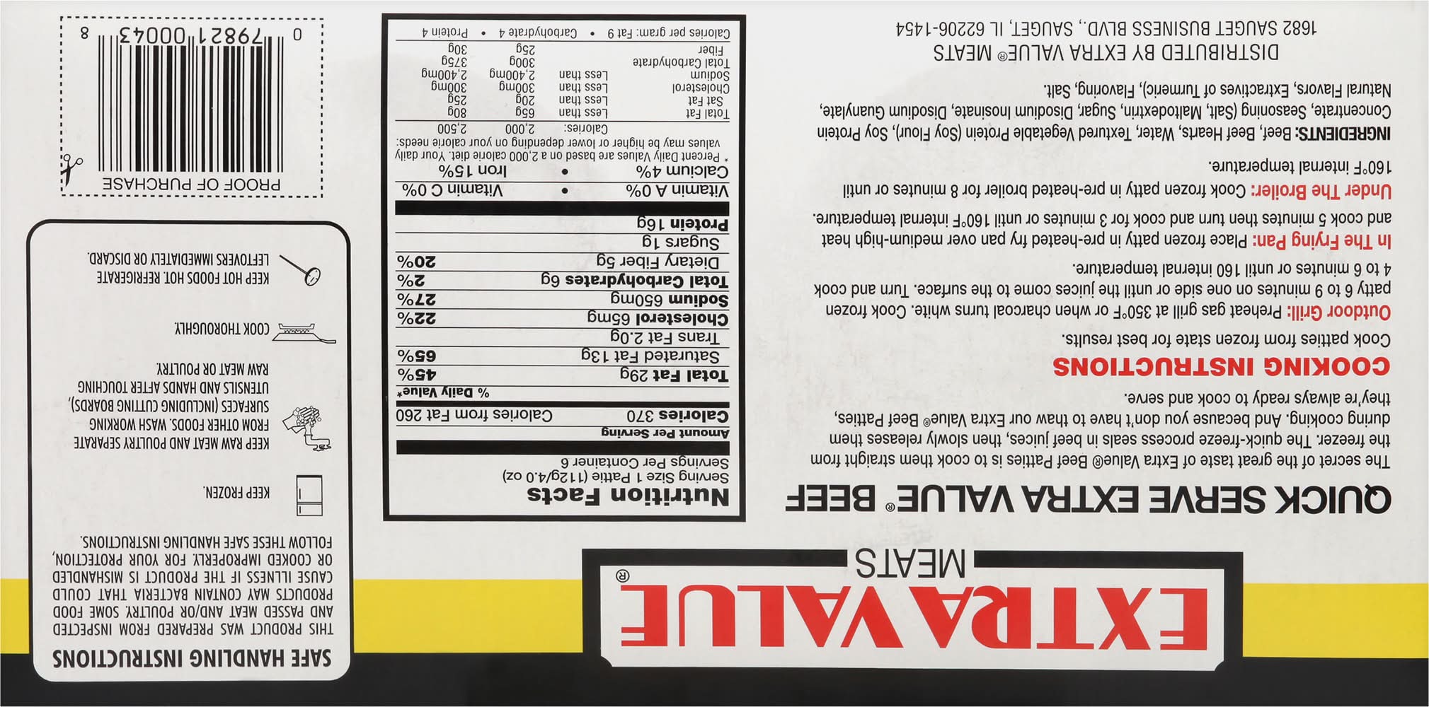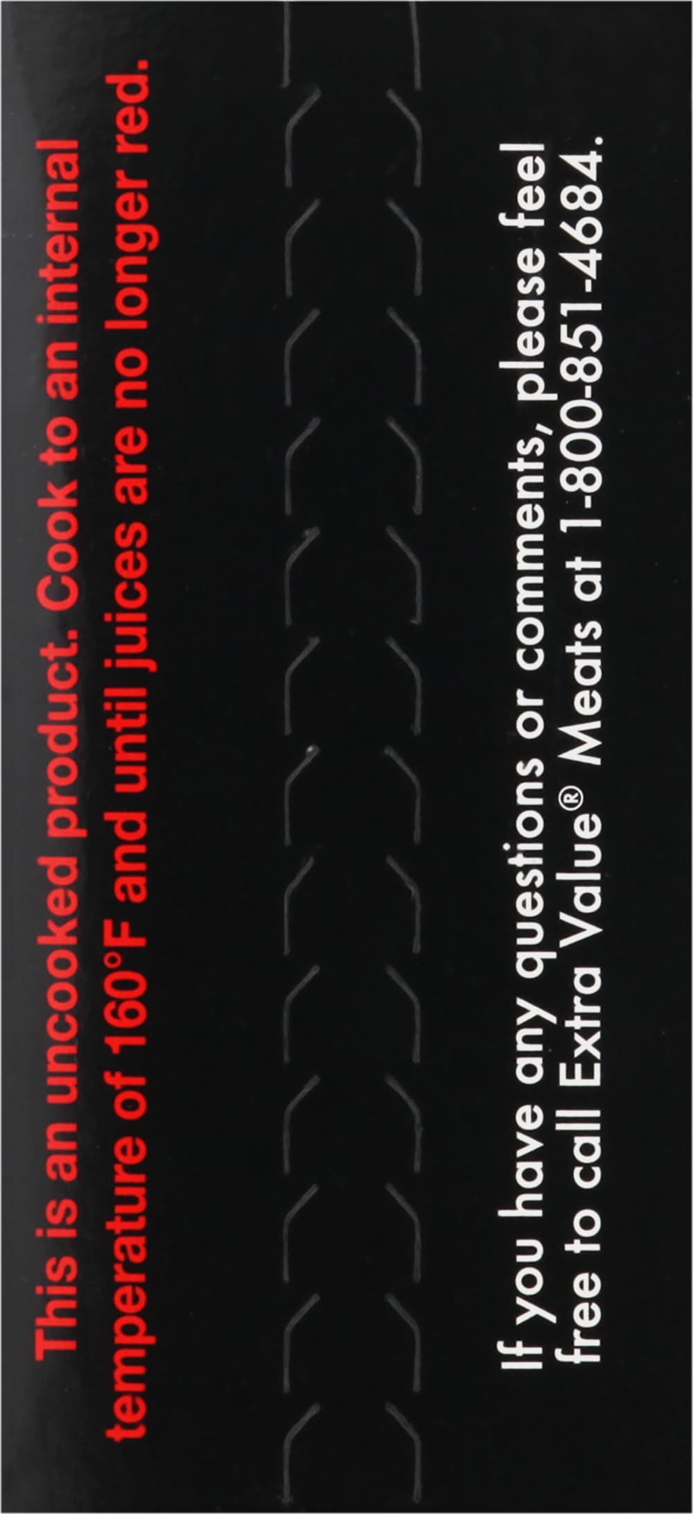 Directions for use: Directions: This product was prepared from inspected and passed meat and/or poultry. Some food products may contain bacteria that could cause illness if the product is mishandled or cooked improperly. For your protection, follow these safe handling instructions. Keep frozen. Keep raw meat and poultry separate from other foods. Wash working surfaces (including cutting boards), utensils and hands after touching raw meat or poultry. Cook thoroughly. Keep hot foods hot. Refrigerate leftovers immediately or discard. Cooking Instructions: Cook patties from frozen state for best results. Outdoor Grill: Preheat gas grill at 350 degrees F or when charcoal turns white. Cook frozen patty 6 to 9 minutes on one side or until the juices come to the surface. Turn and cook 4 to 6 minutes or until 160 internal temperature. In the Frying Pan: Place frozen patty in pre-heated fry pan over medium-high heat and cook 5 minutes then turn and cook for 3 minutes or until 160 degrees F internal temperature. Under the Broiler: Cook frozen patty in pre-heated broiler for 8 minutes or until 160 degrees F internal temperature. This is an uncooked product. Cook to an internal temperature of 160 degrees F and until juices are no longer red. Keep frozen. Storage recommendation: Keep frozen.