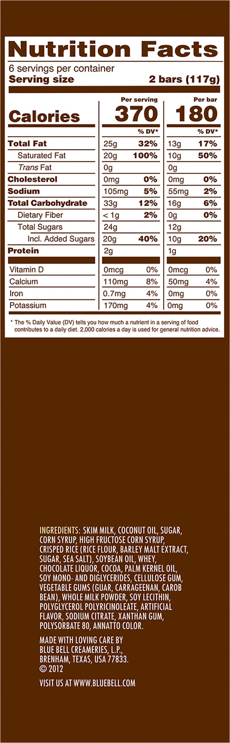 Krunch Bars Blue Bell Creameries, L.P., Brenham,Texas,77833,USA