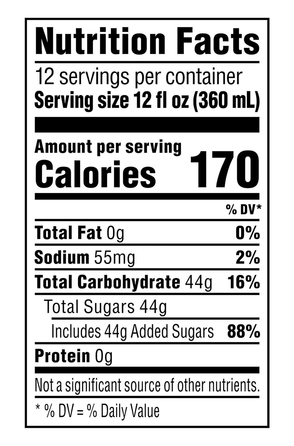 Ingredients: Carbonated Water, High Fructose Corn Syrup, Natural and Artificial Flavor, Citric Acid, Sodium Benzoate (Preserves Freshness), Caffeine, Gum Arabic, Sodium Citrate, Calcium Disodium EDTA (to Protect Flavor), Sucrose Acetate Isobutyrate, Yellow 5, Blue 1 Contains: Corn