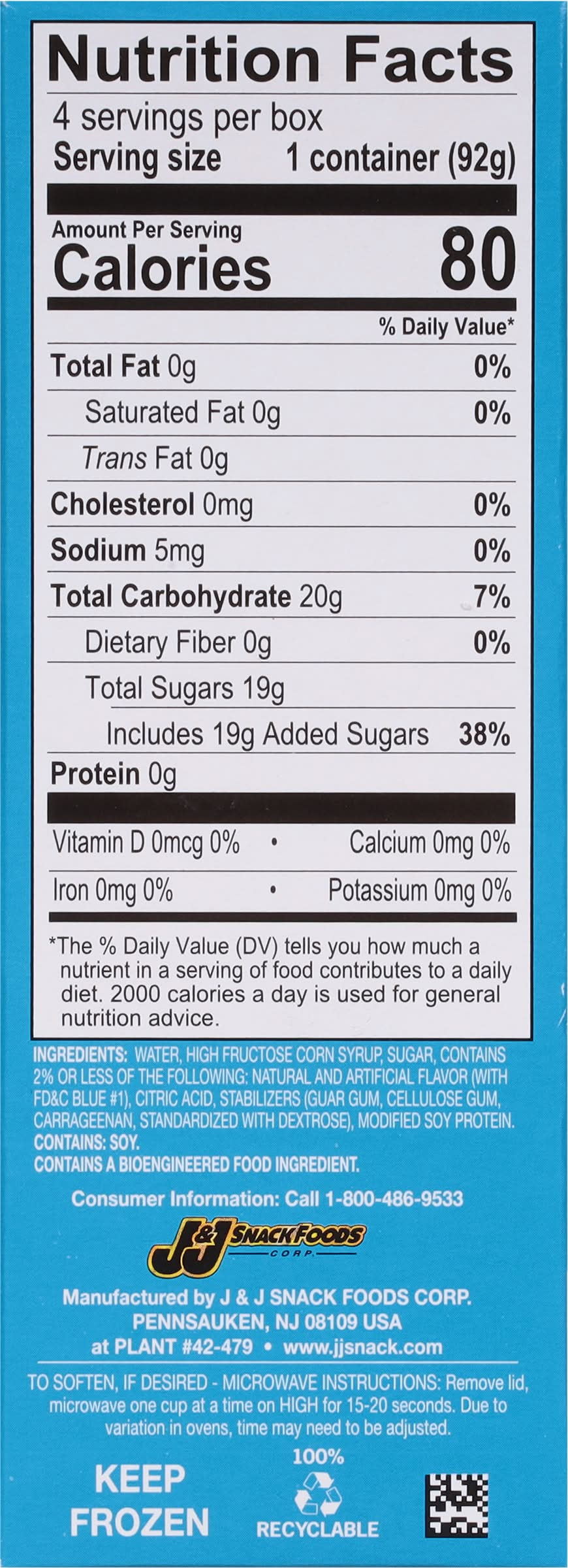 Icee Freeze Blue Raspberry • Flavor: Blue raspberry • Pack size: 4 • Number of servings: 4