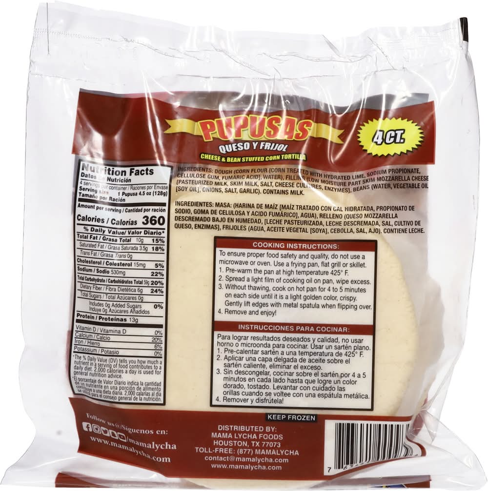 Mamá Lycha Pupusas Cheese & Bean Stuffed Corn Tortillas (18 oz, 4 ct)