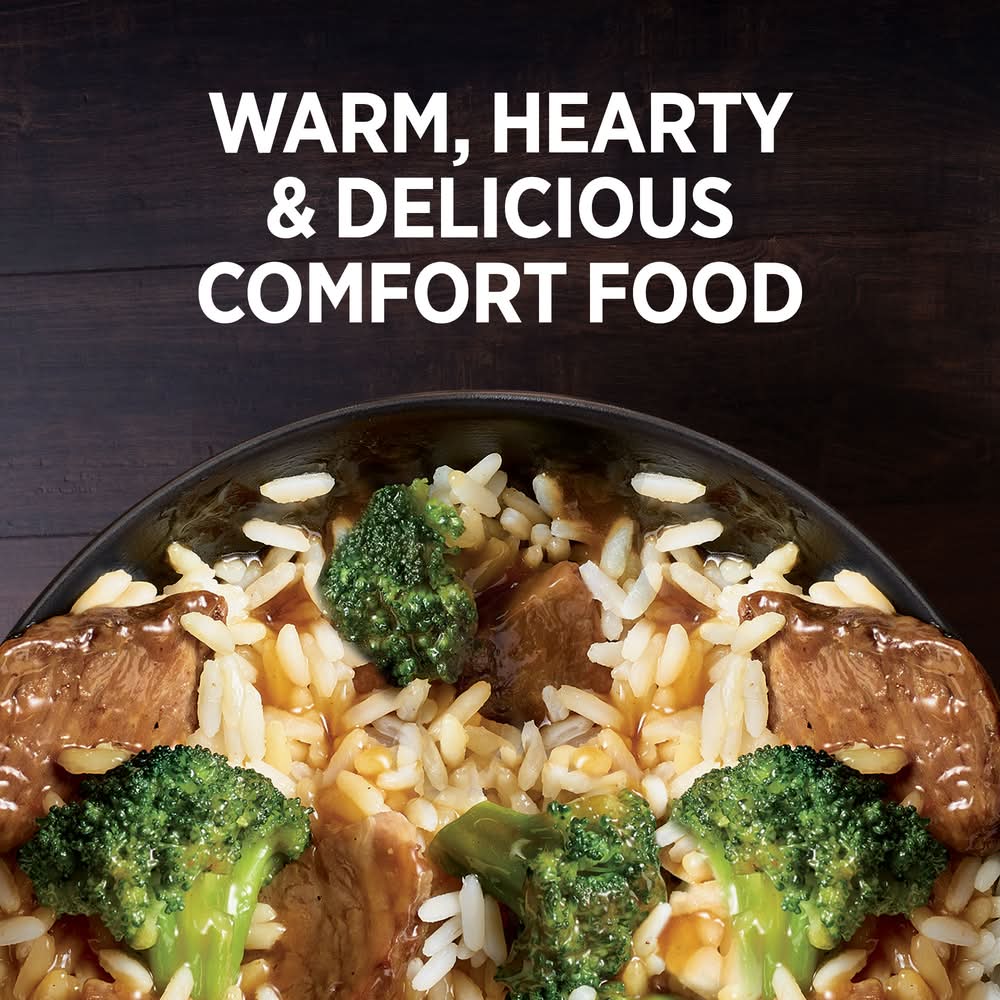 Get your Asian food fix and put an easy meal on the table with Marie Callender's Tender Ginger Beef and Broccoli Bowl. Dig into tender and juicy USDA Choice beef and broccoli over a bed of rice in a delectable made-from-scratch beef gravy made with ginger and garlic. Ready in minutes, this savory beef bowl comes in a serving dish made from plant-based fiber*, features wholesome ingredients, no artificial flavors or colors, and no preservatives and is a good source of protein with 17 grams per serving. Enjoy any meal occasion with the delicious and homemade taste of Marie Callender's frozen meals and microwave dinners. Made with minimum of 90% plant-based fiber. • Conagra Brands, PO Box 3534, Dept. MC, Chicago, IL, 60654 • Packaging: Reusable