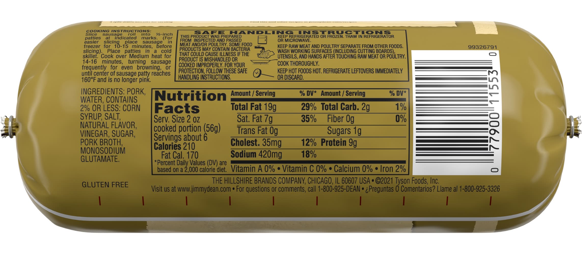 Jimmy Dean Pork Breakfast Sausage Roll is made with premium pork, and seasoned to perfection with our signature blend of spices. This savory sausage has 9 grams of protein per serving to give you more fuel to help power your day. Simply slice into sausage patties, cook and serve with eggs and toast for a traditional breakfast. Use or freeze fresh sausage within 7 days of opening. The Hillshire Brands Company, Chicago, IL, 60607