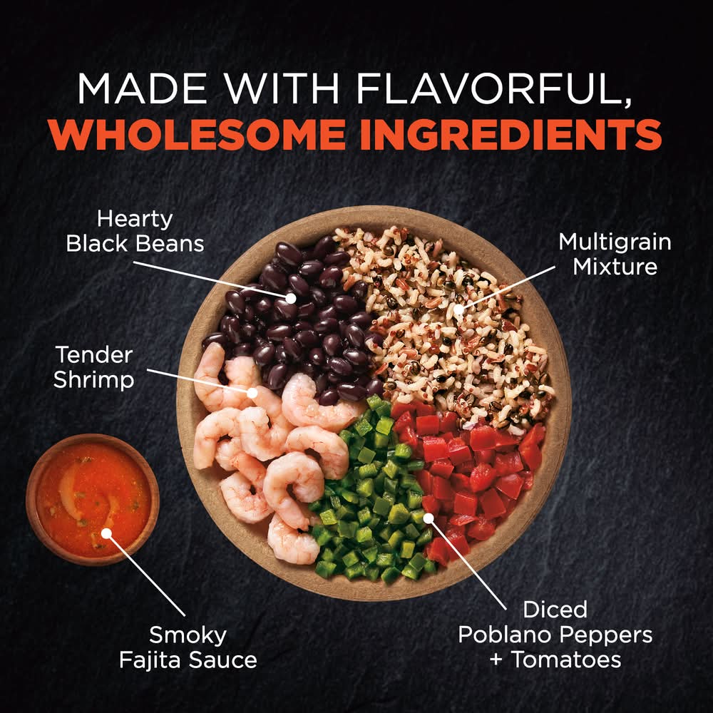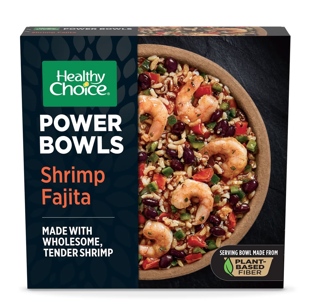 Feel unstoppa-bowl with a 10 oz. Healthy Choice Power Bowls Shrimp Fajita Frozen Meal. Made with all wholesome, tender shrimp, this microwavable meal is filled with black beans and vegetables served on top of a grains blend with a smoky fajita sauce. Best of all, it has 12 g of protein and 8 g of fiber per serving and comes in a serving bowl made from plant-based fiber. Healthy Choice Power Bowls are easy, satisfying meals that are ready in minutes. Perfect for quick weeknight dinners, filling weekend meals or anytime you are craving shrimp fajitas. Add some variety to dinner and lunch this week with Healthy Choice.
