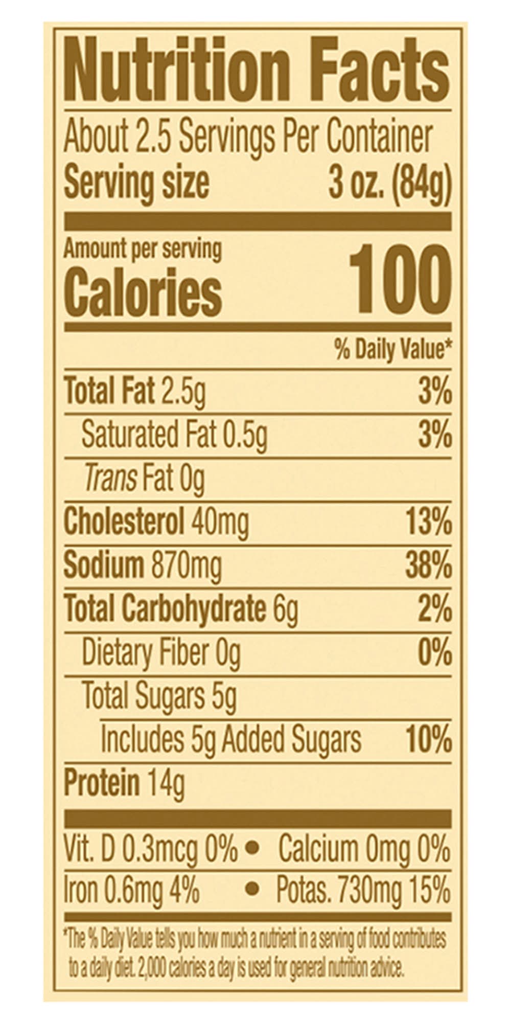 Ingredients: Cured with: Water, Honey, Dextrose, Contains 2% or Less of Salt, Potassium Lactate, Sodium Phosphates, Sodium Diacetate, Sodium Erythorbate, Sodium Nitrite