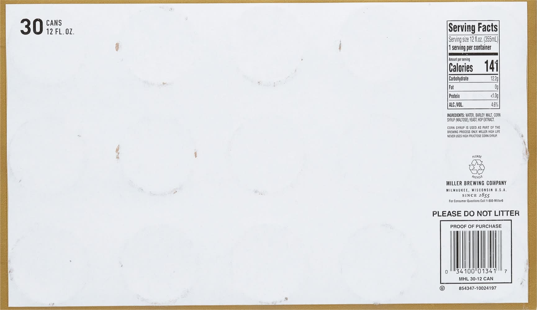 Miller High Life American Lager Beer (30 x 12 fl oz)