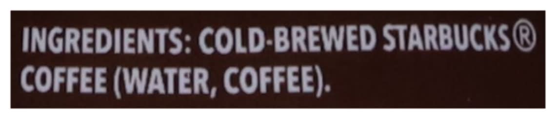 Ingredients: Cold Brewed Starbucks Coffee (Water, Coffee)