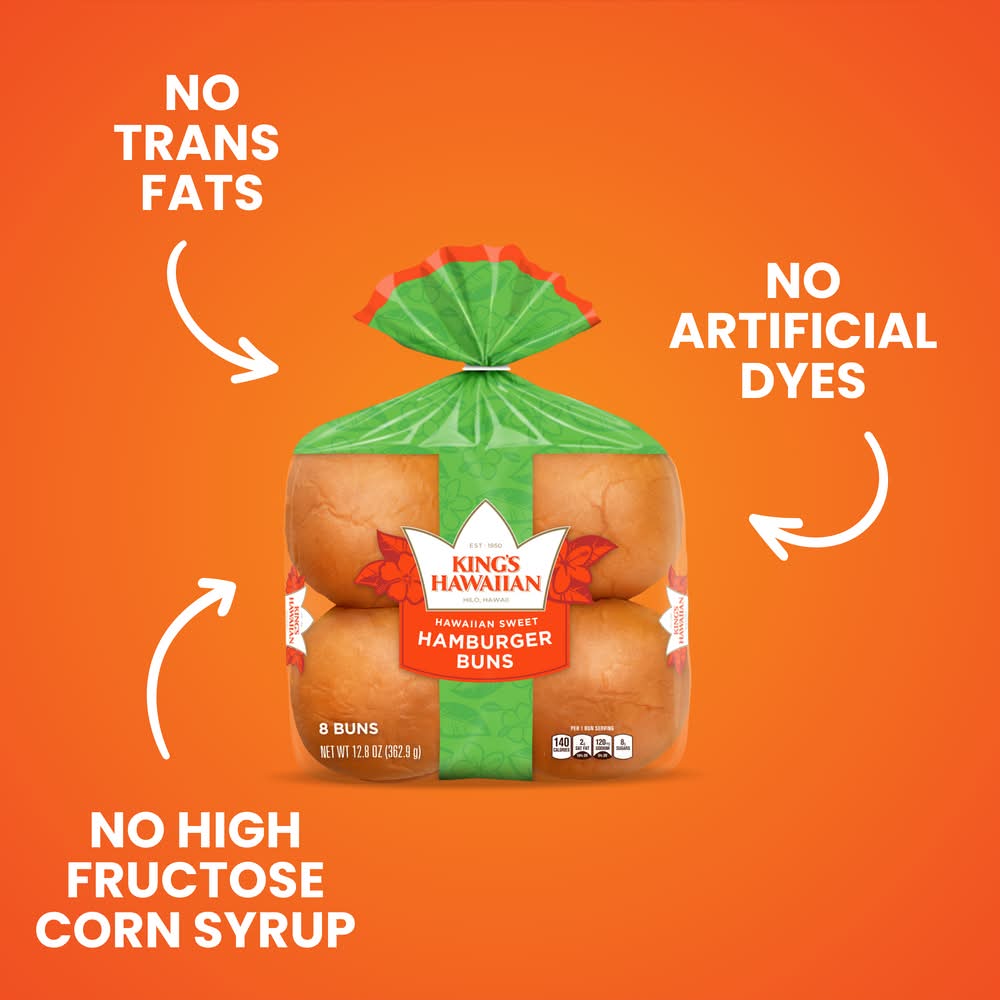 King''s Hawaiian , Hawaiian Sweet Hamburger Buns • King's hawaiian bakery west, inc., 19161 Harborgate Way, Torrance, CA, 90501, 877-695-4227, khcares(at)kingshawaiian.com.kingshawaiian.com • Packaging: Reusable