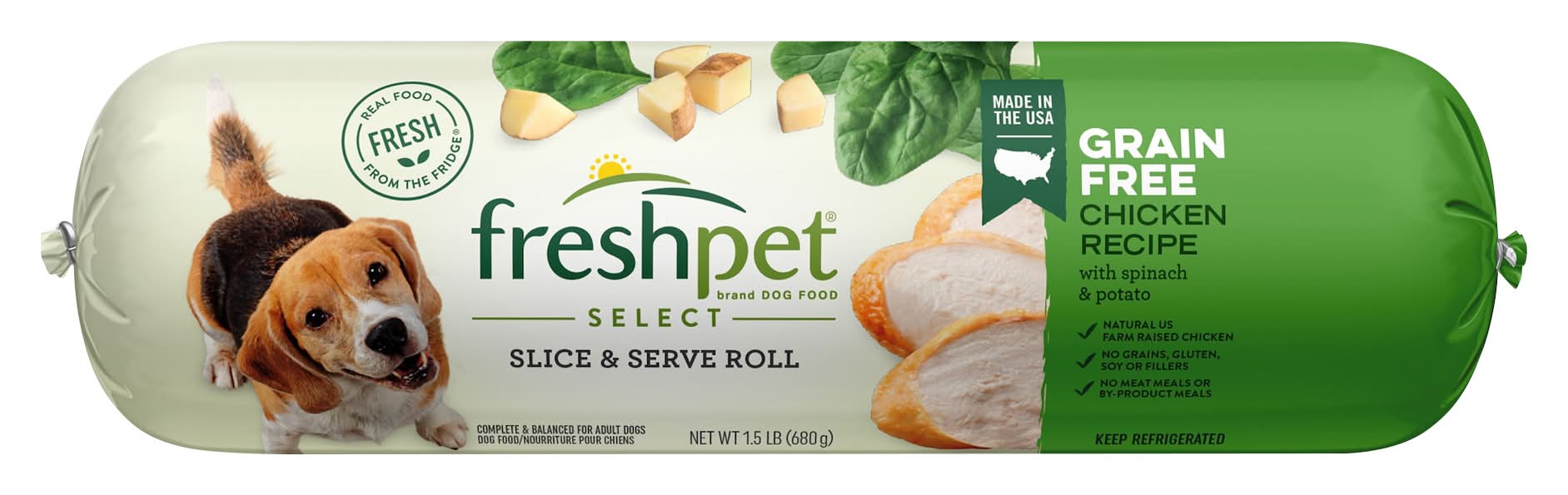 Freshpet Chicken Recipe Spinach & Potato Slice Serve Roll For Dogs, Adult (1.5 lbs)