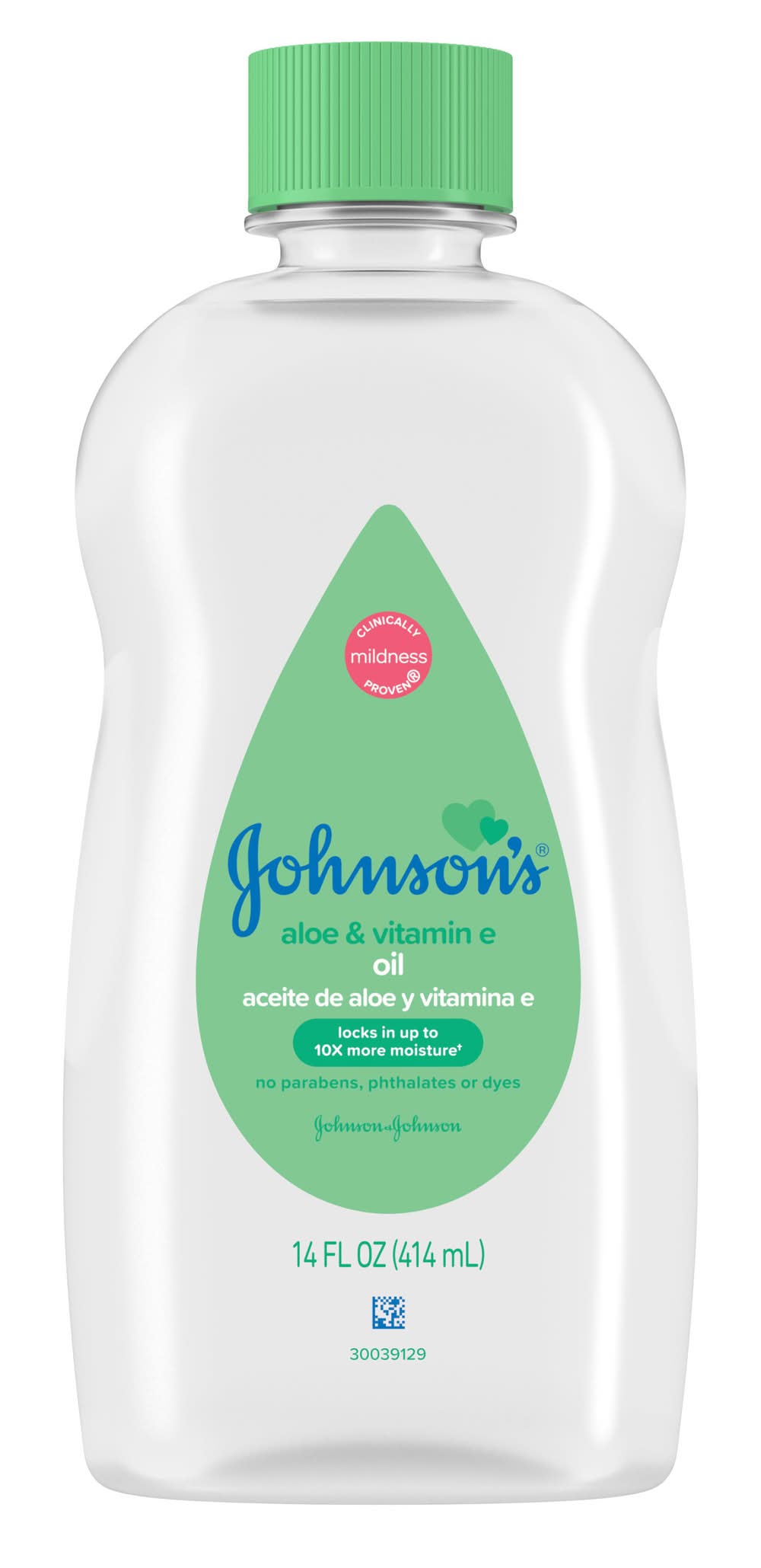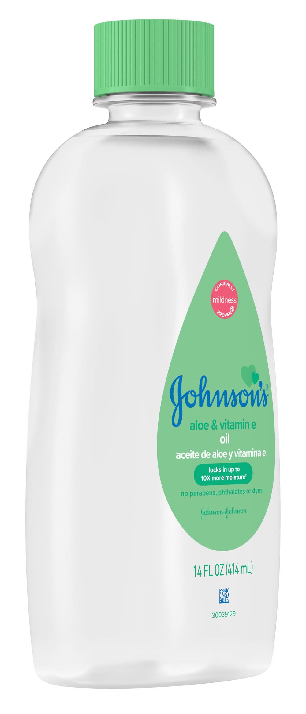 Oil With Aloe Vera & Vitamin E • Johnson & Johnson Consumer Inc., Skillman,NJ,08558 • Packaging: Reusable