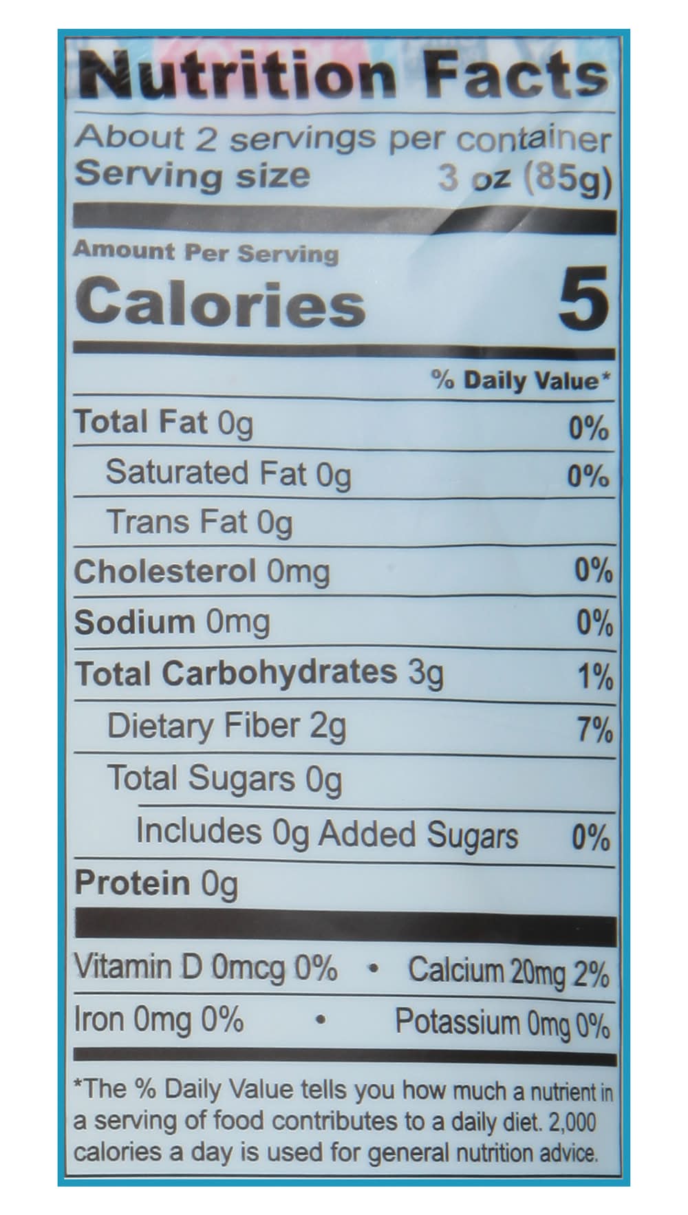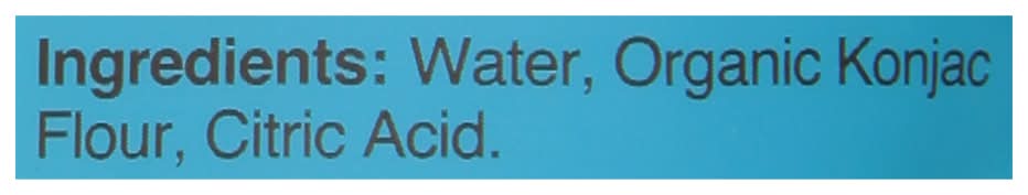 Ingredients: Water, Organic Konjac Flour, Citric Acid Contains: 'Free From Gluten', 'Free From Soybeans'