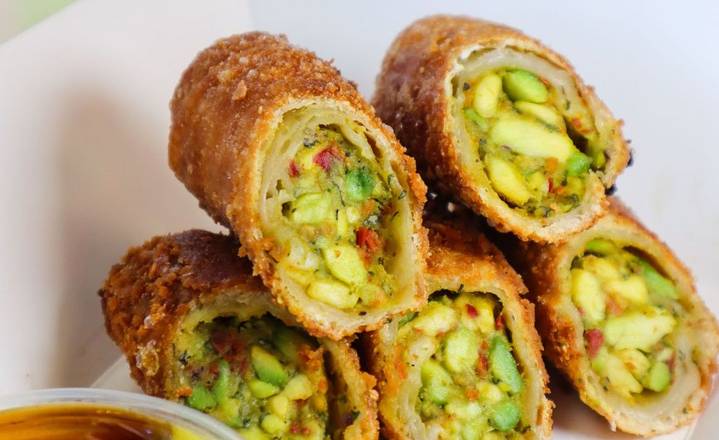 Three Piece: Avocado, Sun-Dried Tomato, Red Onion, Cilantro, and Fresh Lemon Juice Fried in a Crisp Wrapper. Served with a Honey-Mustard/Teriaki Dipping Sauce.