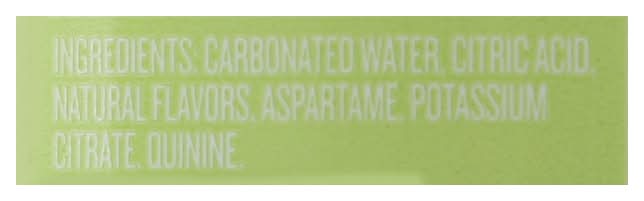 Ingredients: Carbonated Water, Citric Acid, Natural Flavors, Aspartame, Potassium Citrate, Quinine