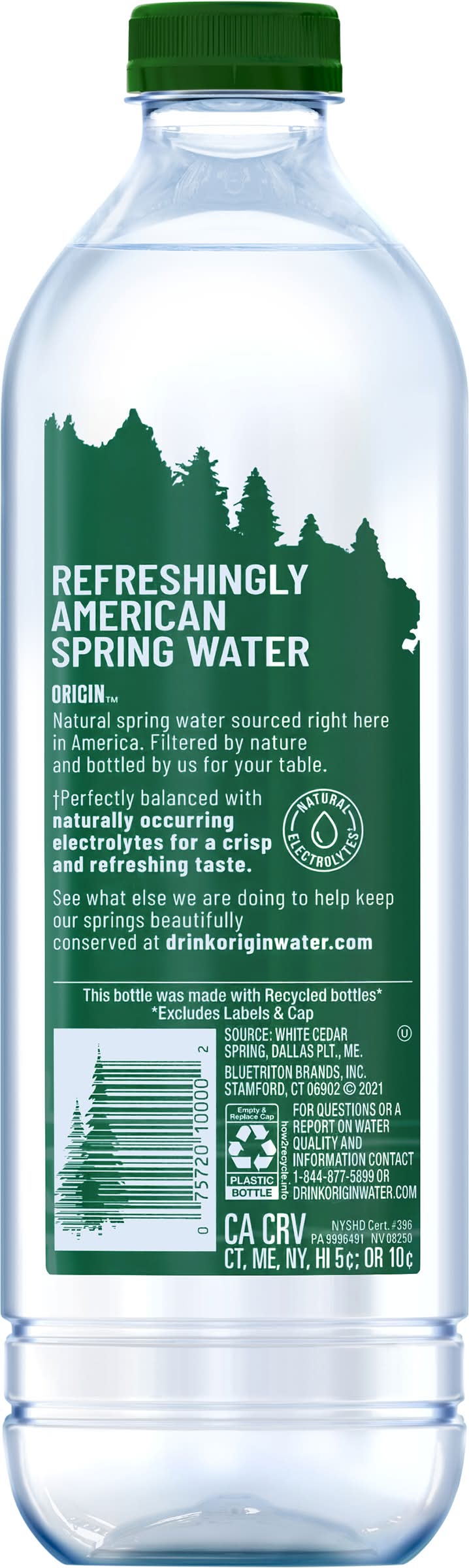 Spring Water, 100% Natural • Brand: Origin • kosher • Bluetriton brands, inc., Stamford CT 06902 • Packaging: Reusable