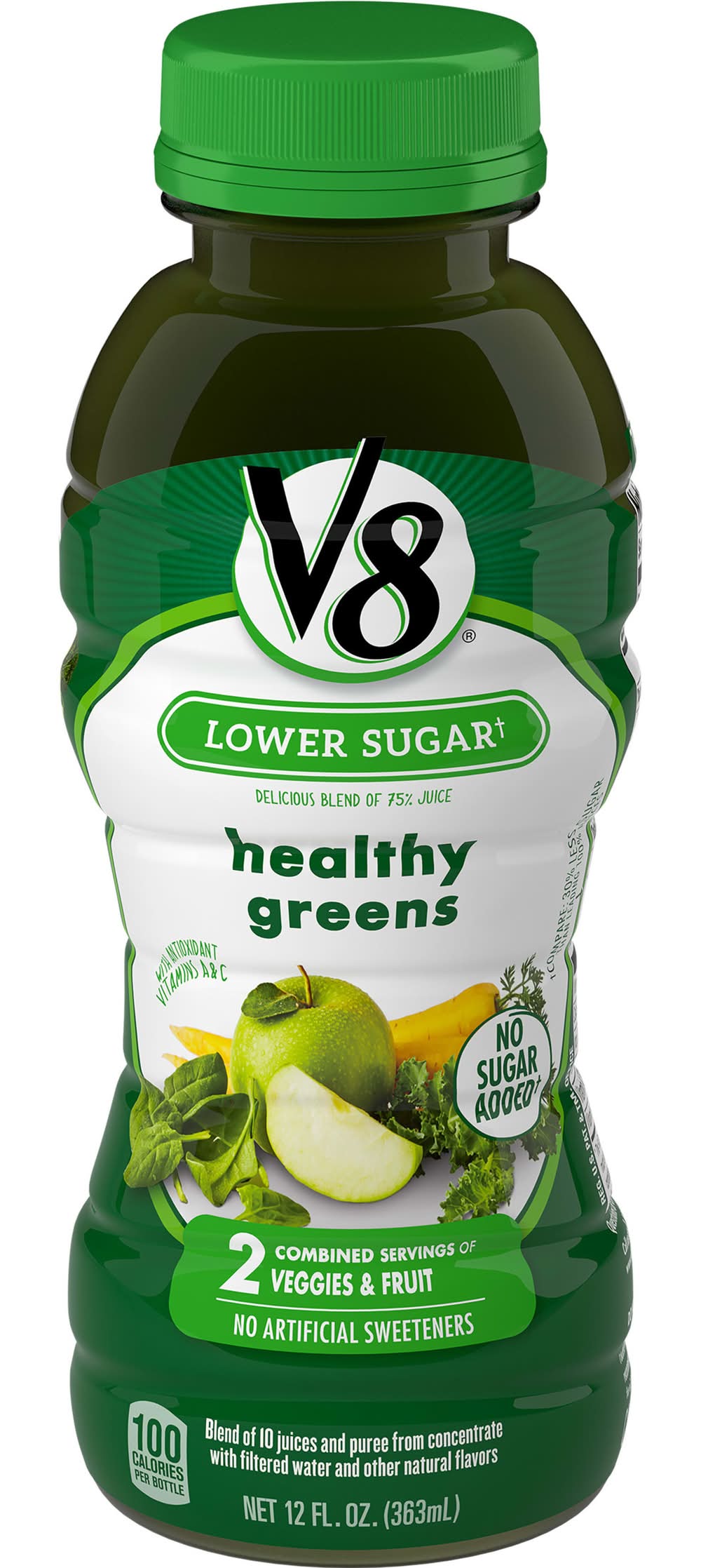 V8® Healthy Greens. 75% juice, lower sugar, and over a full serving of veggies in every bottle. Good morning, indeed. Brand: V8