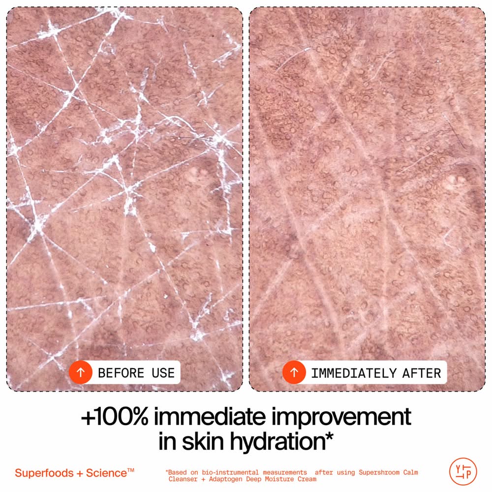 What it is: A soothing, milky face cleanser for dry and sensitive skin that cleanses away pollutants and impurities without stripping the skin of moisture. Skin Type: Dry and Combination Skincare Concerns: Dryness, Dullness, and Redness Highlighted Ingredients: - Ashwagandha and Chaga Mushroom: Antioxidant-containing polyphenols know to soothe. - Snow Mushroom: A polysaccharide that hydrates similarly to hyaluronic acid. - Oat Oil Lipids: Support a non-stripping cleanse by replenishing the skin barrier. Ingredient Callouts: This product is vegan and cruelty-free. What Else You Need to Know: This nourishing and hydrating face wash for sensitive skin is formulated with mushroom extracts and seven percent glycerin to reduce redness, soothe stressed skin, and soften rough texture while gently removing makeup and SPF. It is noncomedogenic, fragrance-free, pH-balanced, and clinically and ophthalmologist tested for a purifying yet gentle cleanse. Clinical Results: In a test, the cleanser was clinically measured to: - Maintain skin's moisture barrier - Provide 24-hour hydration post-wash - Cleanse pollution particles from skin's surface In a 59-person consumer study, after 2 weeks: - 86% agree skin looks soothed Clean at Sephora Size: 8 oz/237 ml