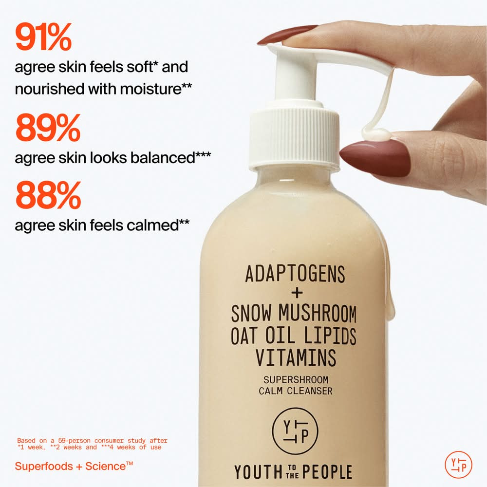 Youth To The People Adaptogens + Snow Mushroom + Oat Oil Lipids + Vitamins Supershroom Calm Cleanser 8 oz/237 ml