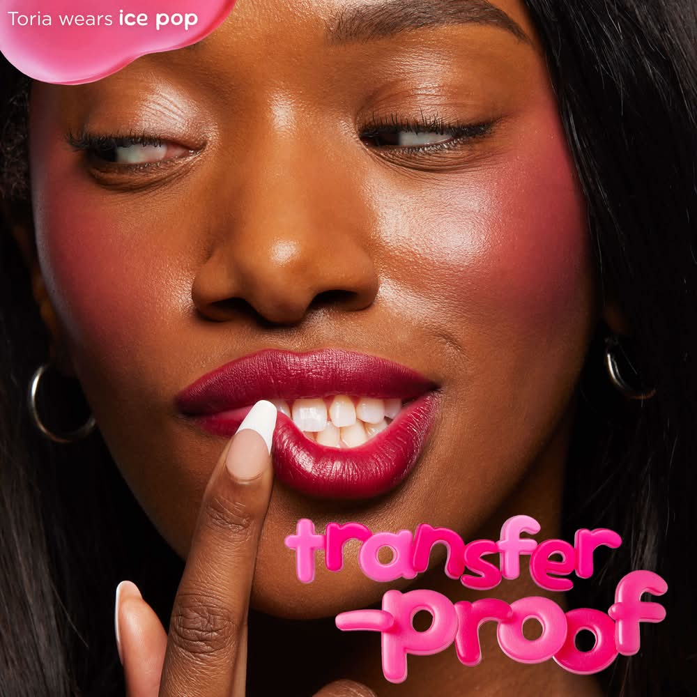 What it is: A long-wearing lip tint with a pompom cushion tip for effortless, transfer-proof color that stays juicy from AM to PM. Formulation Type: Lip Stain Benefits: Long-wearing Highlighted Ingredients: - Maracuja Oil: Rich in essential fatty acids and vitamin C for smoother, softer lips.- Hyaluronic Acid: Delivers moisture for firmer-, supple-looking lips.- 10+ Superfruit Complex: Smooths, nourishes, and hydrates. Ingredient Callouts: Free of parabens, formaldehydes, formaldehyde-releasing agents, phthalates, mineral oil, retinyl palmitate, oxybenzone, coal tar, hydroquinone, sulfates SLS & SLES, triclocarban, and triclosan. It is also vegan and cruelty-free. What Else You Need to Know: This dermatologist-tested juicy tint gives lips a natural flush that lasts all day. The pompom tip makes it mess-free and mistake-proof; just dab, blend, done. No touch-ups needed with the transfer-proof, kiss-proof formula packed with over ten superfruits and hyaluronic acid for visibly plump, hydrated lips. Clinical Results: In a clinical study of 33 subjects, results show:- The tint is transfer-proof- The tint has all-day-long wear Color: Ice pop