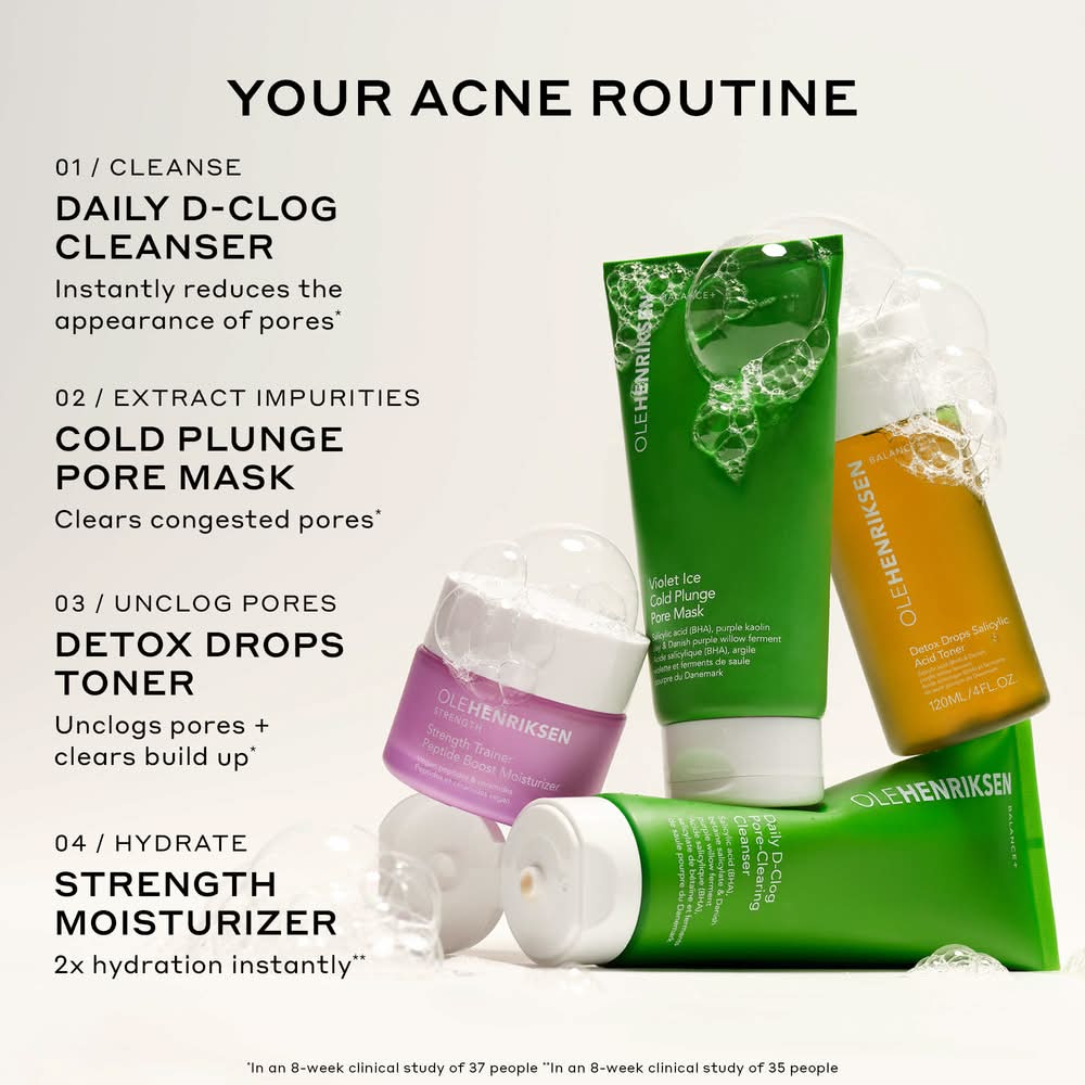 Ingredients: -Kaolin and Purple Clay Extract: Clear dirt, oil, and impurities.-Salicylic Acid (BHA): Clears blemishes and refines pores.- Danish Purple Willow Ferment: Clarifies and controls surface oil.Ingredients: Aqua/water/eau, Kaolin, Glycerin, Propanediol, Juniperus Communis Fruit Water, Caprylyl/capryl Glucoside, Sodium Polyacrylate, Betaine Salicylate, Lactobacillus/salix Purpurea Bark Ferment Extract, Menthoxypropanediol, Salicylic Acid, Chlorphenesin, Decyl Glucoside, Acacia Senegal Gum, Xanthan Gum, Cucumis Sativus (Cucumber) Fruit Extract, Lauryl Glucoside, Sodium Phytate, Lactobacillus Ferment, Citric Acid, Lactic Acid, Sodium Hydroxide, Manganese Violet (Ci 77742).
