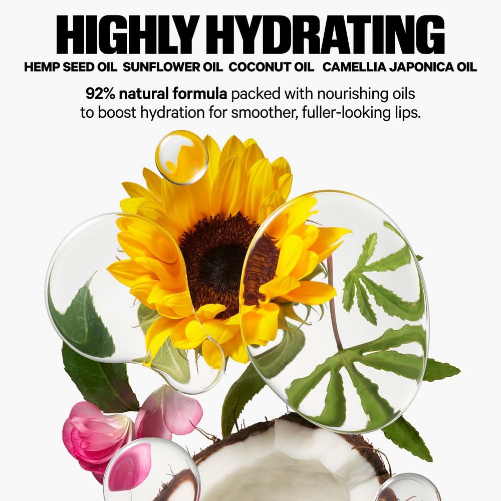 Ingredients: -Hemp Seed Oil: Hydrates, nourishes, and conditions lips for a soft, comfortable feel.-Sunflower Oil and Coconut Oil: Soothes and moisturizes dry, chapped lips.-Camellia Japonica Seed Oil: Intensely hydrates and restores lips without a greasy feel.Polyglyceryl-2 Isostearate/Dimer Dilinoleate Copolymer, Helianthus Annuus (Sunflower) Seed Oil, Cocos Nucifera (Coconut) Oil, Camellia Japonica Seed Oil, Caprylic/Capric Triglyceride, Dextrin Myristate, Aloe Barbadensis Leaf Extract, Flavor (Aroma), Cannabis Sativa (Hemp) Seed Oil, Carthamus Tinctorius (Safflower) Seed Oil, Agave Tequilana Leaf Extract, Tocopheryl Acetate, Pentaerythrityl Tetraisostearate, Mica, Vanillin, Benzyl Alcohol, Iron Oxides (CI 77492, CI 77499), Red 7 Lake (CI 15850).The list of ingredients is subject to change, please consult the packaging of the product purchased.