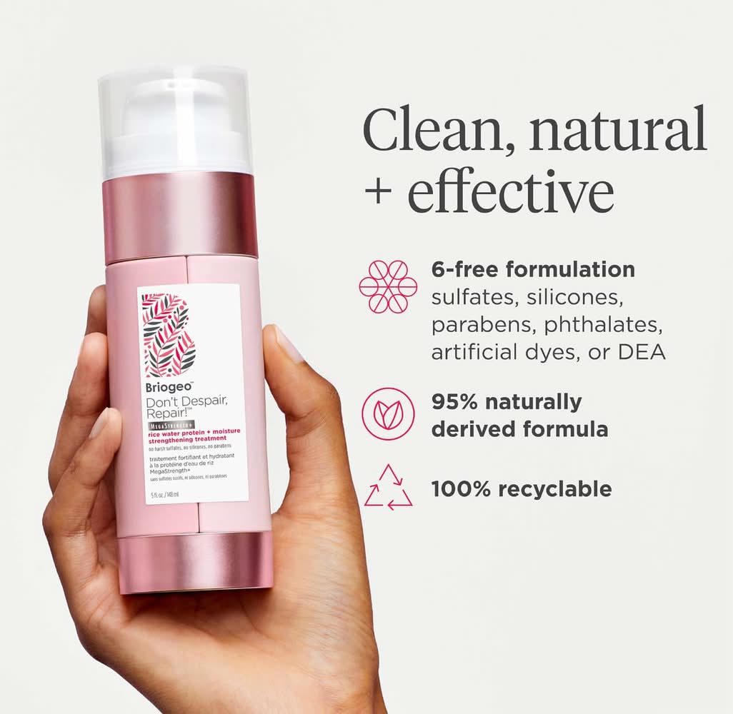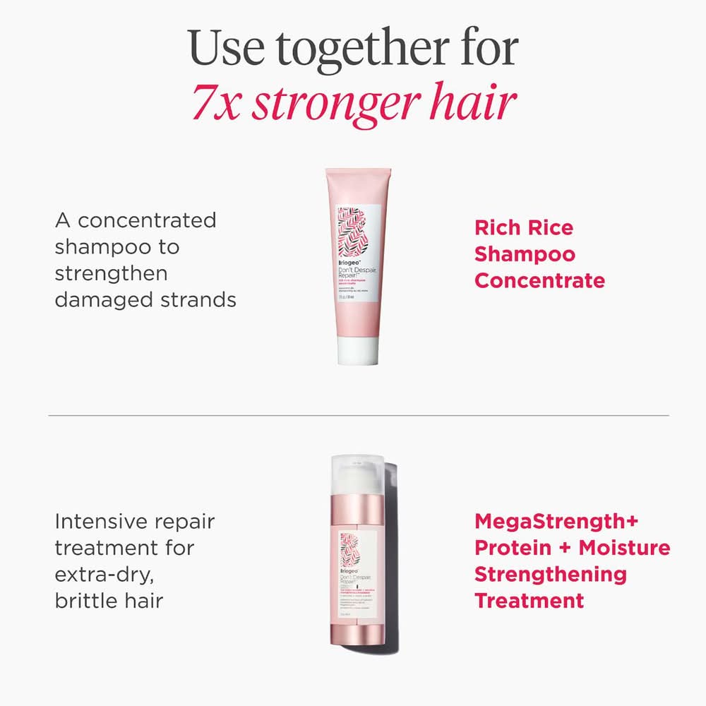 What it is: A weekly protein treatment for severely damaged strands that’s scientifically shown to strengthen hair up to 2X after one use. Key Benefits: - Advanced Rice Protein Complex helps strengthen damaged hair cuticles - A blend of nourishing natural oils and vitamins helps restore the hair’s elasticity - Fast-acting formula strengthens hair up to 2X after one use Highlighted Ingredients: - Rice Protein Complex: Protects hair against damage by strengthening the cuticle with protein. - B Vitamins: Help improve elasticity and moisture retention. - Algae Extract: Provides a potent dose of antioxidants to help nourish and protect hair. What Else You Need to Know: This 98 percent naturally derived, concentrated strengthening treatment features a dual-action formula that combines strand-fortifying rice protein with ultra-effective moisturizers to help protect and repair severely damaged hair. It is silicone-free, vegan, cruelty-free, and Leaping Bunny certified. Clinical Results: - Scientifically proven to strengthen hair up to 2X after one use - Scientifically proven to decrease hair breakage up to 60% after one use Clean at Sephora Size: 5 oz/ 148 mL