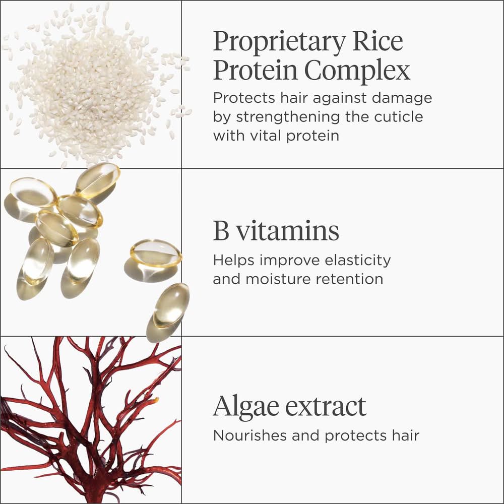 Ingredients: -Proprietary Rice-Protein Complex: Protects hair from future damage and strengthens cuticles.-B Vitamins: Improve texture while boosting body and shine.-Algae Extract: Hydrates and strengthens hair while protecting the scalp from free-radical damage.Protein Treatment: Water/Aqua/Eau, Saccharomyces/Rice Ferment Filtrate, Brassica Alcohol, Squalane, Cetearyl Alcohol, Cetyl Alcohol, Oryza Sativa (Rice) Bran Water, Hydrolyzed Rice Protein, Sargassum Filipendula Extract, Oryza Sativa (Rice) Bran Oil, Brassicyl Isoleucinate Esylate, Prunus Amygdalus Dulcis (Sweet Almond) Oil, Capryloyl Glycerin/Sebacic Acid Copolymer, Diheptyl Succinate, Behentrimonium Methosulfate, Guar Hydroxypropyltrimonium Chloride, Cetrimonium Chloride, Rosa Canina Fruit Oil, Glycerin, Arginine, Potassium Sorbate, Sodium Benzoate, Pentylene Glycol, Citric Acid, Fragrance (Parfum), Dehydroacetic Acid, Benzyl Alcohol, Iron Oxides CI 77491.Moisture Treatment: Water/Aqua/Eau, Hydrogenated Castor Oil/Sebacic Acid Copolymer, Sodium PCA, Biotin, Panthenol, Iron Oxides CI 77491. The list of ingredients is subject to change, please consult the packaging of the product purchased.
