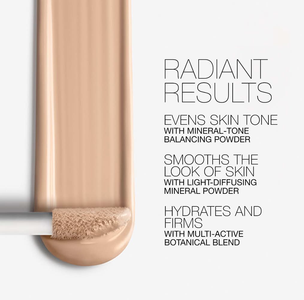 What it is: A multipurpose concealer that brightens, corrects, and perfects for up to 16 hours with a creamy medium-to-buildable coverage and natural, radiant finish. Coverage: Medium Finish: Radiant Formulation: Liquid Highlighted Ingredients: - Mineral-Tone Balancing Powder: Works to optically correct, not mask, imperfections.- Light-Diffusing Mineral Powder: Blurs the appearance of fine lines and wrinkles and helps even out skin tone.- Multi-Active Botanical Blend (Magnolia Bark Extract, Grape Seed Extract, and Vitamin E): Hydrates, firms, reduces redness, and helps strengthen the skin barrier. Ingredient Callouts: Free of parabens, formaldehydes, formaldehyde-releasing agents, phthalates, mineral oil, retinyl palmitate, oxybenzone, coal tar, hydroquinone, sulfates SLS & SLES, triclocarban, triclosan, and contains less than one percent synthetic fragrance. It is also vegan. What Else You Need to Know: A long-lasting, skincare-infused formula that evens skin tone, blurs the appearance of dark spots and blemishes, and brightens undereyes, while retaining moisture for 24-hour hydration. It may be used to highlight and contour. Crease-resistant and transfer-proof. Available in 30 shades. Color: Tiramisu