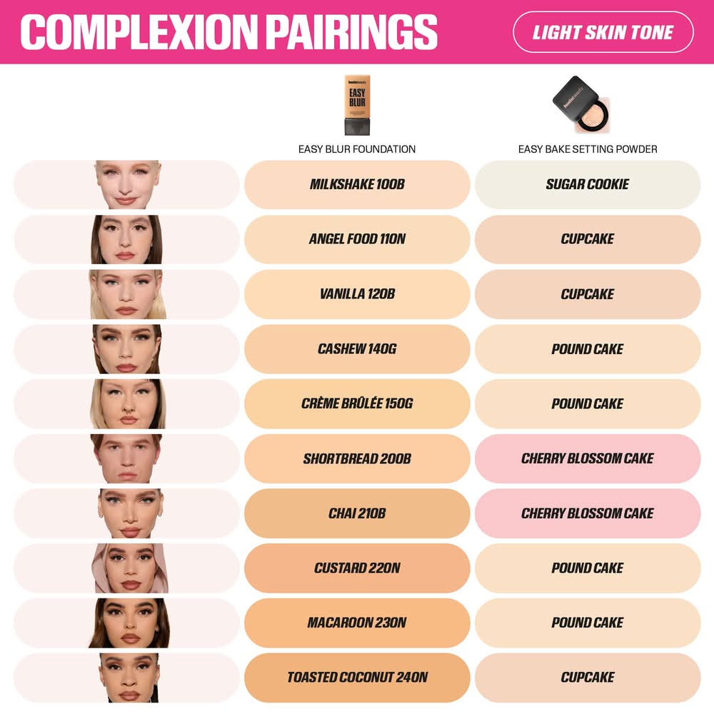 What It Is:A lightly pigmented, ultra-brightening setting powder that bakes & sets, blurs fine lines & pores, and sets makeup for 18hrs with an airbrush finish. Highlighted Ingredients: - Vitamin E: Moisturizes and strengthens the skin barrier for a smooth application.- Rice Starch Powder: Absorbs excess oil.- Micronized Powder: Allows you to layer without caking. Ingredient Callouts: This product is formulated without parabens and is cruelty-free. What Else You Need To Know: The long-wear, non-comedogenic, flashback-free formula blends seamlessly into the skin with a matte finish to control shine and keep makeup in place all day. The vitamin E enriched powder works to subtly color correct, brighten and highlight contours of the face, leaving a translucent veil of color on your skin. Clinical Results: Based on an independent study of 20 people of various skin types and tones- 100% agreed the product blurred fine lines & pores Based on an independent study on 60 people of various skin types and tones- 96% agreed their skin looks airbrushed Color: Pound cake
