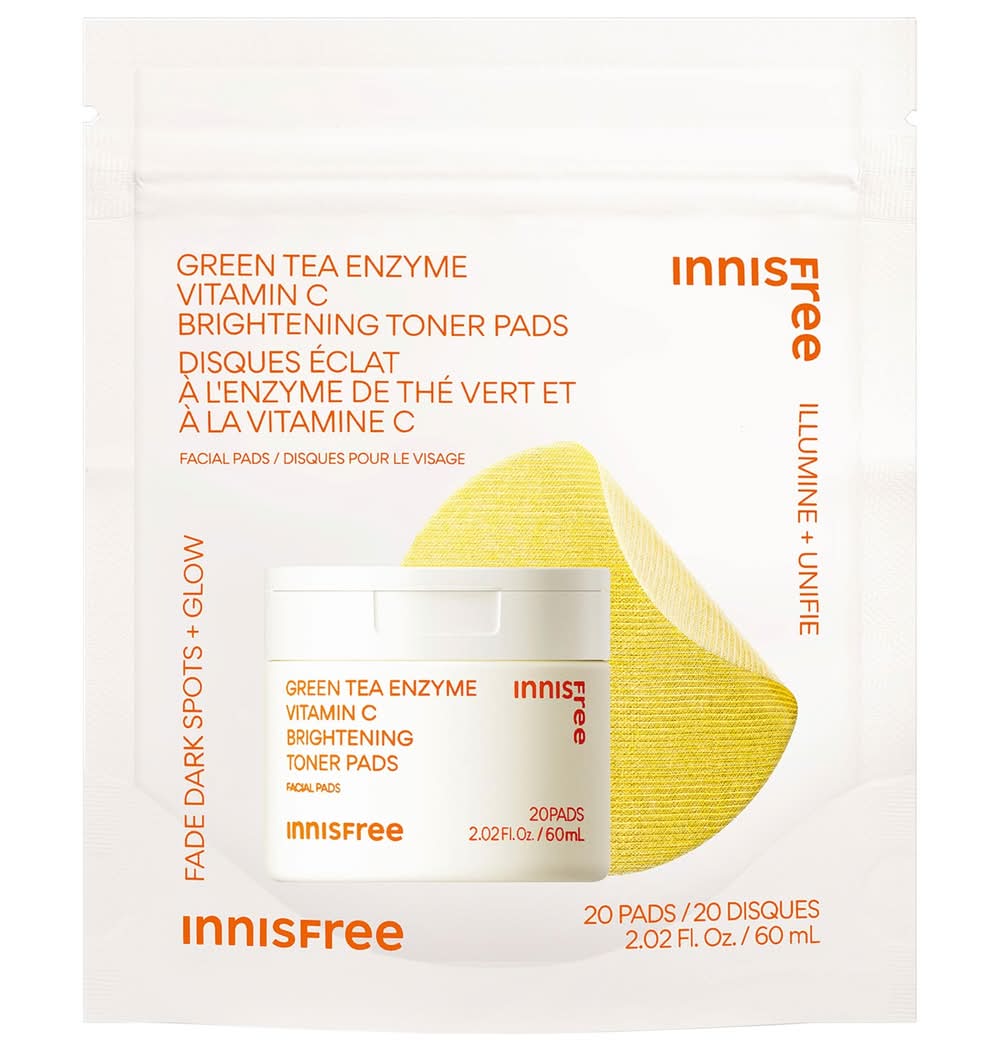 Innisfree Green Tea Enzyme Vitamin C Brightening + Exfoliating Toner Pads 2.02 oz/60 ml