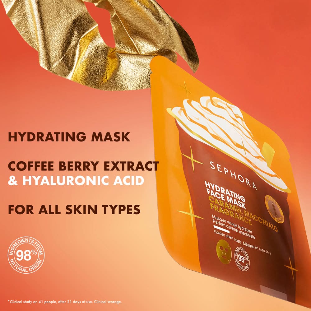 What it is: Achieve a healthy glow & moisturized skin in just 10 minutes with this limited edition Caramel Macchiato Face Mask. Skin Type: Normal, Dry, Combination, and Oily Skincare Concerns: Dryness, Acne and Blemishes, Oiliness Formulation: Mask What Else You Need to Know: The fully golden mask with its warming effect will turn any skincare routine into a self-care ritual. The formula contains 98% ingredients from natural origins to infuse skin with comfort. The caramel macchiato scent leaves skin with a healthy-glow in just 10 minutes. Clinical Results: - 93%(1) felt their skin was instantly moisturized.- Skin is more radiant: 93% (2) - Reduces signs of fatigue: 95% (2)- Complexion is fresher: 98% (2) Size: 1 pc/1 pc
