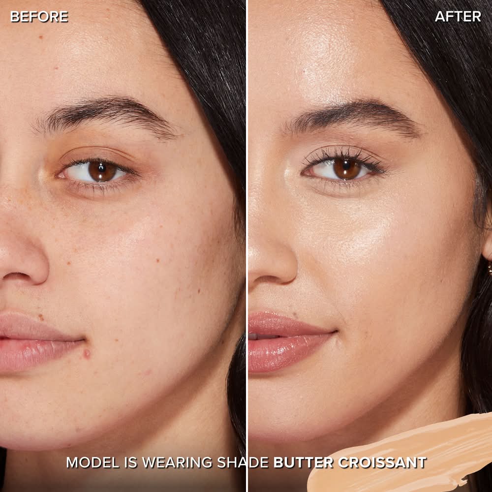 What it is: A buttery, serum-light, buildable under eye, creamy concealer that effortlessly glides on skin to camouflage and cover imperfections for up to 24 hours. Coverage: Medium Finish: Natural Formulation: Liquid Highlighted Ingredients: - Coconut Water: Aids in delicately replenishing skin’s moisture levels.- Alpine Rose: Helps empower skin’s health and resilience.- Hyaluronic Acid: Gives a smoother, more youthful appearance. Ingredient Callouts: This product is cruelty-free. What Else You Need to Know: The waterproof concealer formula is also sweat- and humidity-resistant, non-creasing, and provides all-day moisture. In addition, this formula improves the appearance of dark circles with a blend of plumping and hydrating hyaluronic acid, aloe leaf extract, daikon seed extract, and squalane. Color: Butter croissant