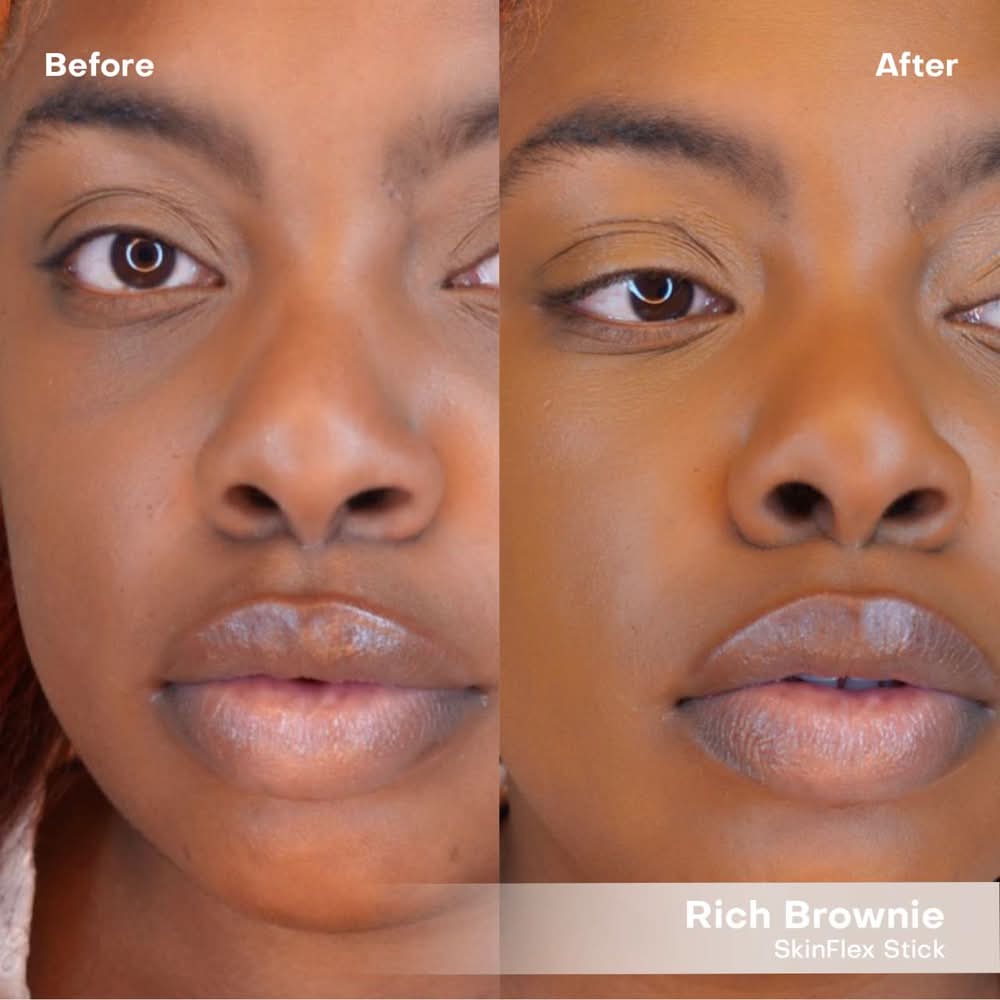 What it is: A lightweight, creamy, blendable foundation stick that delivers high-pigment coverage with a natural, semi-matte finish. Coverage: Full Finish: Natural Formulation: Stick Best For: All skin types. Highlighted Ingredients: - Tribehenin: Glycerin-derived, fatty acid-infused humectant that helps avert moisture loss. - Rice Bran Wax: Antioxidant-rich extract that helps moisturize without blocking pores. - Aloe Leaf Extract: Refreshing hydrator that gently soothes and softens. Ingredient Callouts: Free of parabens, formaldehydes, formaldehyde-releasing agents, phthalates, mineral oil, retinyl palmitate, oxybenzone, coal tar, hydroquinone, sulfates SLS & SLES, triclocarban, triclosan, and contains less than one percent synthetic fragrance. It is also vegan and cruelty-free. What Else You Need to Know: The nutrient-rich ingredients in this foundation hydrate, moisturize, condition, and give skin an antioxidant boost. Crease-resistant pigments help even the appearance of hyperpigmentation and uneven skin tones for a smoother, brighter complexion. These shades are designed for darker skin tones and all skin types. Color: Rich brownie