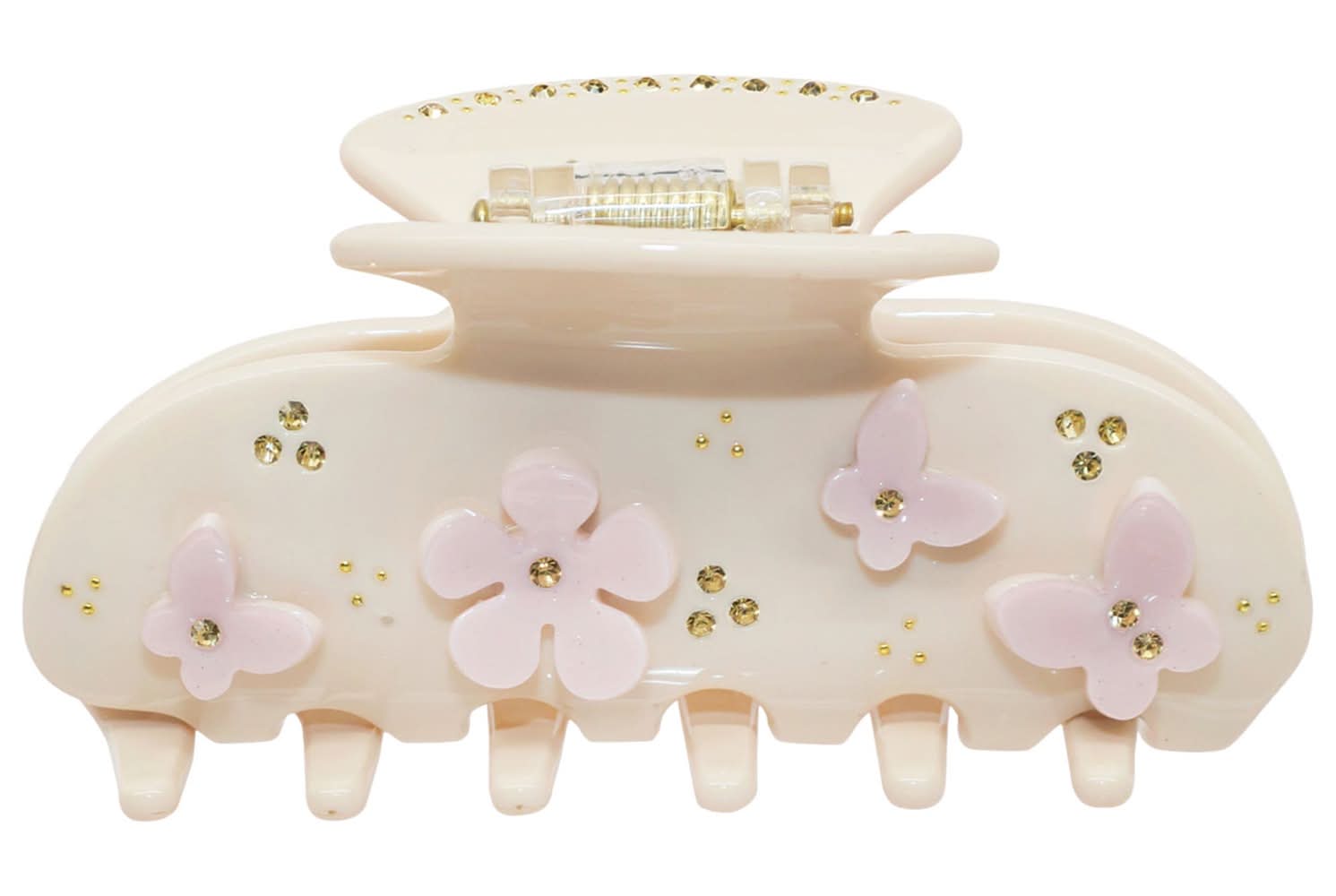 What it is: A small, sweet-as-can-be claw clip made with delicate, hand-set stones to accent any look—perfect for a low bun or half-up style. Hair Texture: Straight, Wavy, Curly, and Coily Hair Type: Fine, Medium, and Thick Hair Concerns: - Hold & Style Extending Key Benefits: - Grips hair comfortably and securely - As fashionable as it is functional - Made of custom biodegradable acetate What Else You Need to Know: The last small claw clip you’ll ever need, these are made to effortlessly secure all hair types and textures, wet or dry, into your style of choice. Emi Jay’s functional, cult-favorite hair accessory doubles as the chicest fashion statement, looking just as good on your purse strap as it does in your mane. Pink Angel features a soft, cloud-white body adorned with baby-pink floral and butterfly appliqués and clusters of stones. Measurements: 3 1⁄8" x 1 1⁄2" x 1 7⁄8"