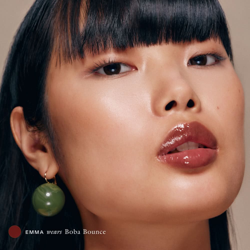 What it is: An exfoliating-to-moisturizing lip balm with AHA + Peptides to smooth ashy, flaky skin, reduce lip wrinkles, and lock in moisture with a glossy finish. Skin Type: Normal, Dry, Combination, and Oily Skincare Concerns: Fine Lines and Wrinkles, Dryness, and Dullness Formulation: Balm Highlighted Ingredients: - Hibiscus Enzymes and Lactic Acid: Immediately buff away dry, flaky skin, so lips can absorb the balm's rich moisture.- Brazilian Açaí and African Mongongo Butters: Intensely nourish and lock in moisture, delivering protective antioxidants.- Collagen-Boosting Peptide: Restores a supple feel and visibly reduces fine lines for naturally plump-looking lips. Ingredient Callouts: This product is gluten-free and cruelty-free. What Else You Need to Know: Transform parched lips into a pillowy pout with a 3-in-1 lip treatment that exfoliates, moisturizes, and adds a flush of color. The ultra-comfy formula cocoons lips in a bouncy, non-sticky gloss made with SpreadIt™ Polymer Technology, which glides color on evenly and locks it within your lip line. • Color: Boba bounce - rich soft brown • female