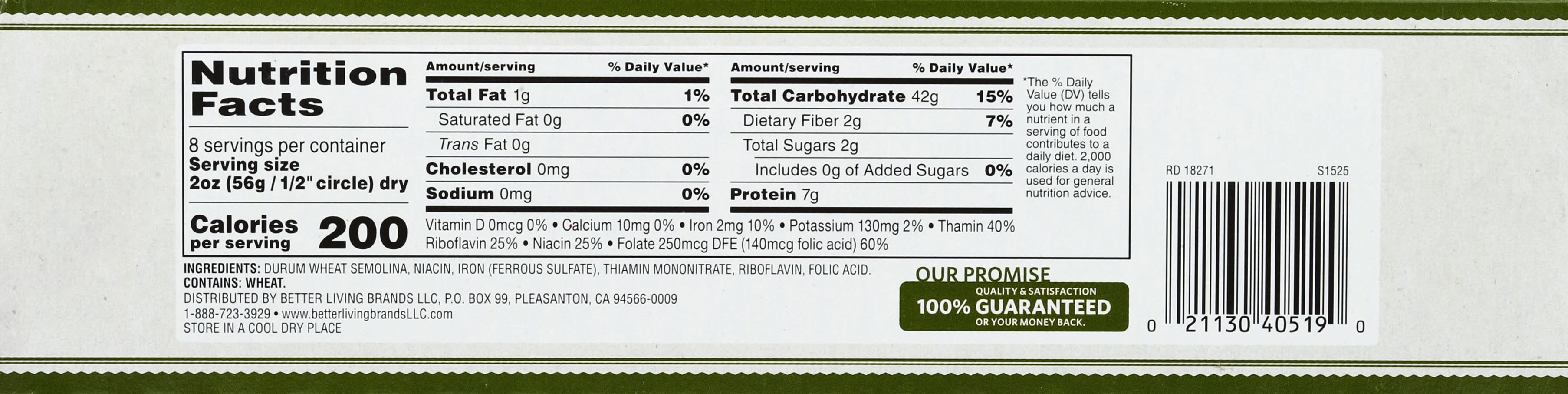 Spaghetti, Thick Better Living Brands, PO Box 99 Pleasanton, CA 94566-0009