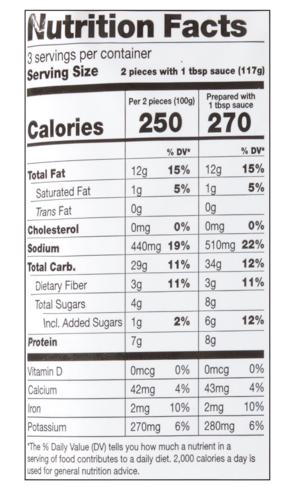 Ingredients: Filling: Cabbage, Textured Soy Flour, Carrot, Sugar, Salt, Mushroom, Spices (Contain Turmeric), Granulated Garlic, Sesame Oil, Wrapper: Water, Bleached Enriched Flour [Wheat Flour, Enrichment (Niacin, Iron, Thiamine Mononitrate, Riboflavin, Folic Acid), Benzoyl Peroxide, Ascorbic Acid (Dough Conditioner), Amylase], Salt, Leavening (Sodium Acid Pyrophosphate, Sodium Bicarbonate, Corn Starch, Monocalcium Phosphate, Calcium Sulfate), Canola Oil, Plum Sauce: Water, Sugar, Pumpkin, Vinegar, Modified Corn Starch, Salt, Apricot Puree (Apricot, Invert Sugar), Guar Gum, Xanthan Gum Contains: Soybeans, Sesame, Wheat, Corn