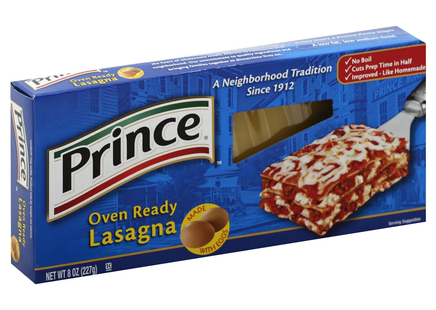 Step by step lasagna directions: 1 lb ground beef. 1/2 tsp dried oregano leaves. 3 cups (about 26 oz jar) pasta sauce. 12 pieces prince oven ready lasagna, uncooked. 1-3/4 cups (15 oz) ricotta cheese. 4 cups mozzarella cheese, shredded. 1 egg, slightly beaten. 1/4 cup grated parmesan cheese. 1/2 tsp dried basil leaves. preparation: remove 12 pieces of pasta from package. heat oven to 400 degrees f. in large skillet, cook meat until browned; remove from heat and drain. stir in pasta sauce. in a small bowl, stir together ricotta cheese, egg, basil and oregano. assembly: in a 13 x 9 x 2 inch greased baking dish, spread 3/4 cup meat sauce. place 3 pieces uncooked pasta crosswise over sauce. pieces should not overlap or touch side of the pan. spread 2/3 cup of ricotta mixture evenly over pasta. spread 3/4 cup meat sauce evenly ricotta covering pasta completely; sprinkle with 1 cup mozzarella cheese. repeat 2 steps and 3 two more times. top with remaining 3 pieces of pasta. spread remaining meat sauce completely over pasta; sprinkle with remaining mozzarella and parmesan cheese. cover with aluminum foil and bake 35 minutes. remove foil and bake additional 5-10 minutes uncovered. let stand 5 minutes before cutting. microwave directions: in a microwave-safe dish, prepare recipe as directed; omit mozzarella and parmesan cheese on top layer. cover with plastic wrap. microwave high (100%) 15-17 minutes, turning twice during cooking. carefully remove plastic wrap; sprinkle with remaining mozzarella and parmesan cheese. replace plastic wrap. microwave at high (100%) 4 minutes or until bubbly. (cooking time may vary based on size of microwave). make ahead directions: prepare recipes as directed; do not bake. cover with plastic wrap, and then cover with foil. refrigerate up to 48 hours or freeze up to 2 months. remove plastic wrap; replace foil. bake refrigerated lasagna at 400 degrees f about 45 minutes and frozen lasagna about 1 hour 35 minutes, removing foil during last 5 minutes of baking.