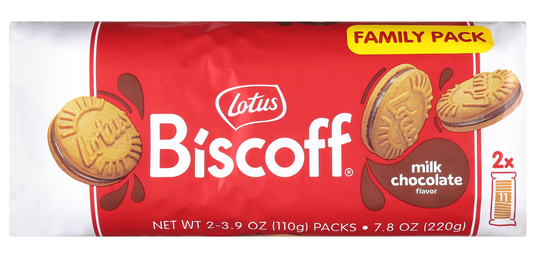 Lotus Biscoff Sandwich Cookies Family pack, Milk Chocolate (2 x 3.9 oz)