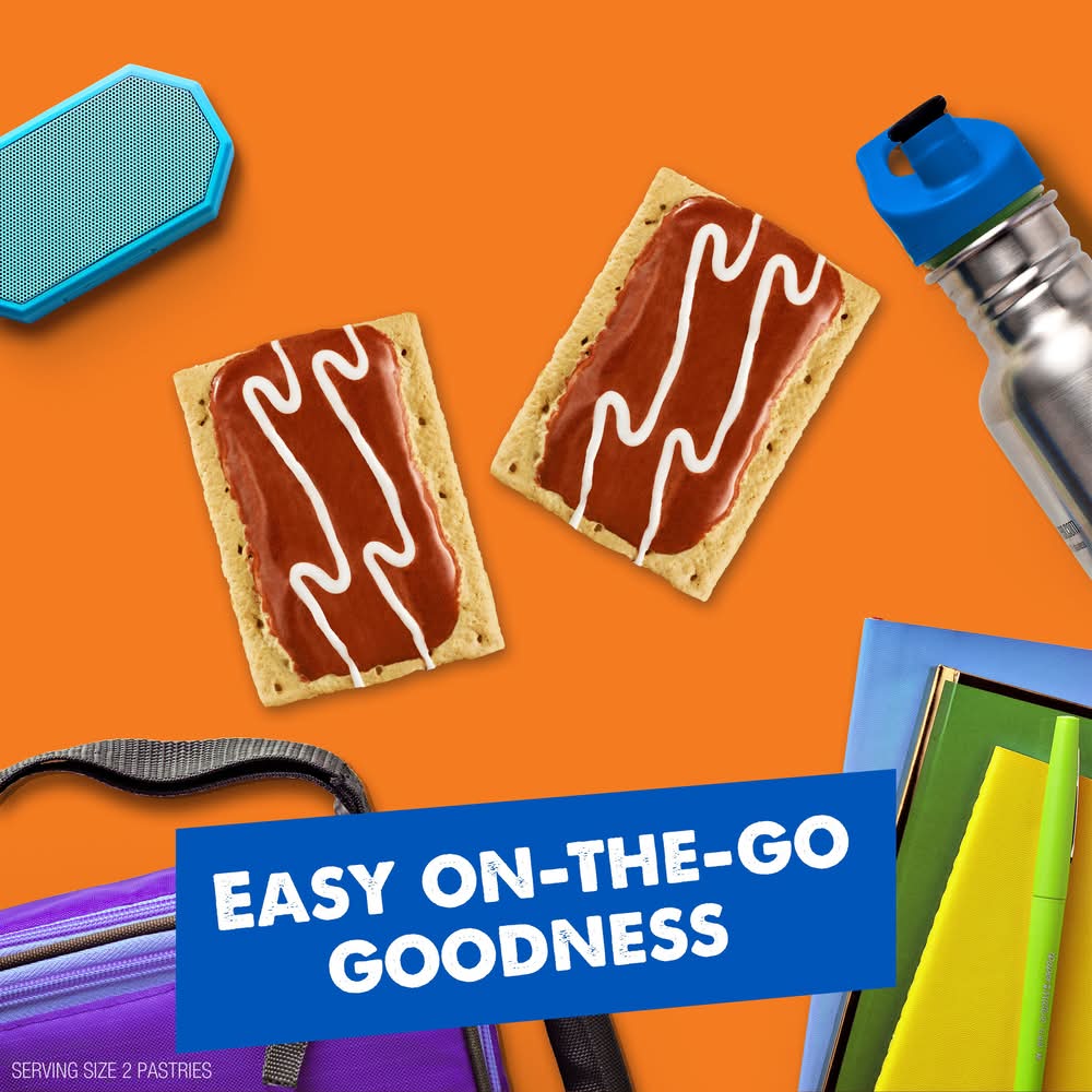 Pop-Tarts toaster pastries are the perfect sweet treat at breakfast, for lunch snack time, or dessert. Featuring a sweet chocolate chip cookie dough-flavored filling in a soft pastry crust, this ready to eat treat is perfect for snack time for kids and adults on the go. Pack Pop-Tarts Frosted Chocolate Chip Cookie Dough in lunchboxes or backpacks when it's time for school snacking, or stock the office pantry with this individually wrapped grab and go adult snack time choice. Pop them in the toaster and pair with milk, create your own ice cream sandwiches, or incorporate into your favorite dessert recipe for a sweet treat. These irresistible snack time options for kids and adults provide a good source of three B vitamins. Stock your pantry with these shelf stable snack alternatives and enjoy ready to eat treats anytime. A flavor for everyone, including beloved classics like Frosted Strawberry or Frosted Cherry, or our more indulgent flavors, Frosted Cookies and Creme or Frosted Chocolate Fudge. Flavor: Frosted chocolate chip cookie dough