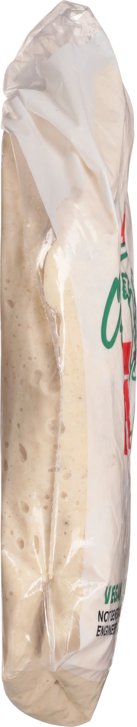 Ingredients: Enriched Wheat Flour (Wheat Flour, Niacin, Reduced Iron, Amylase, Ascorbic Acid, Thiamine Mononitrate, Riboflavin, Folic Acid), Water, Olive Oil, Salt, Yeast, Sugar Contains: Wheat