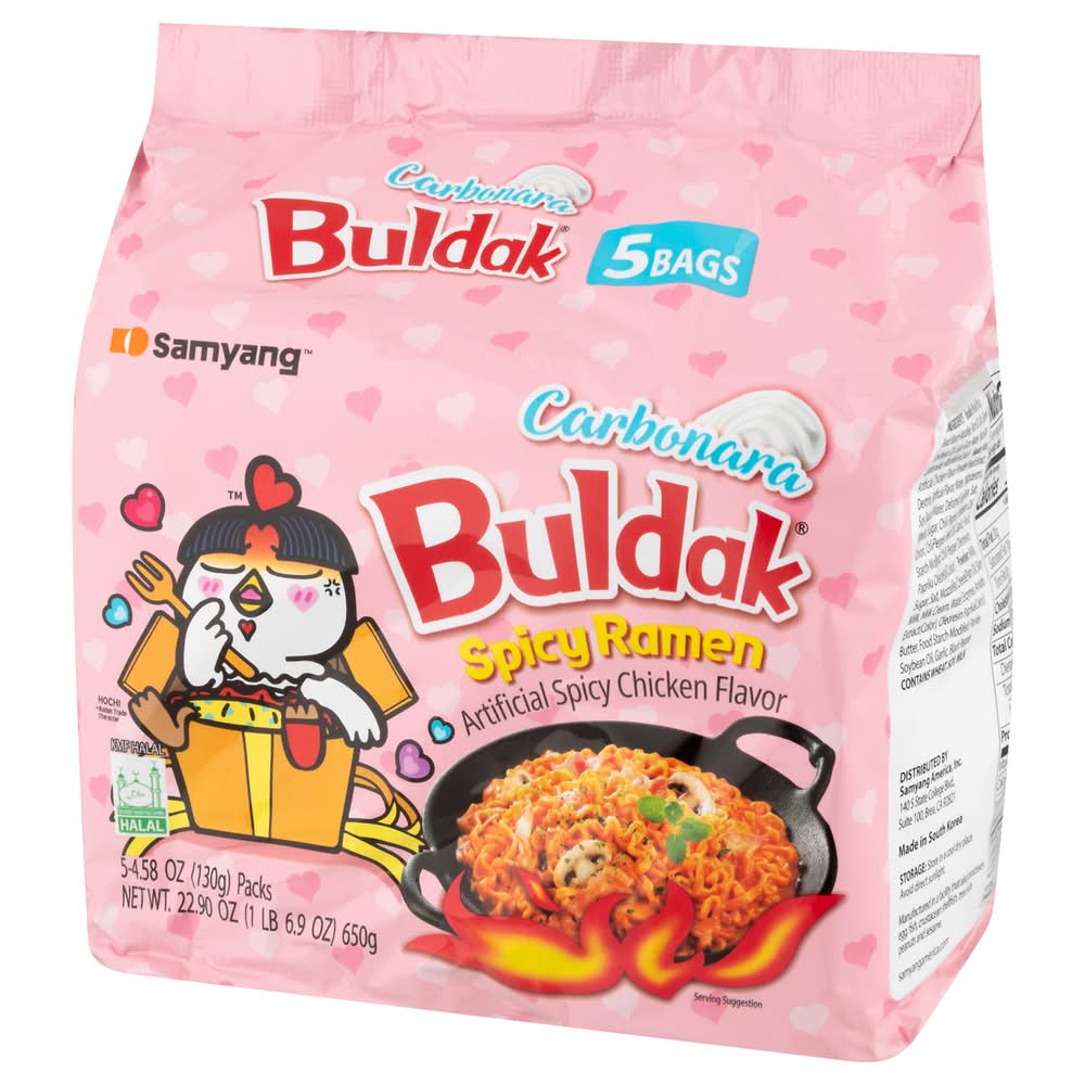 Samyang Buldak Carbonara Stir Fried Ramen Noodles, Spicy Chicken (5 x 4.58 oz)