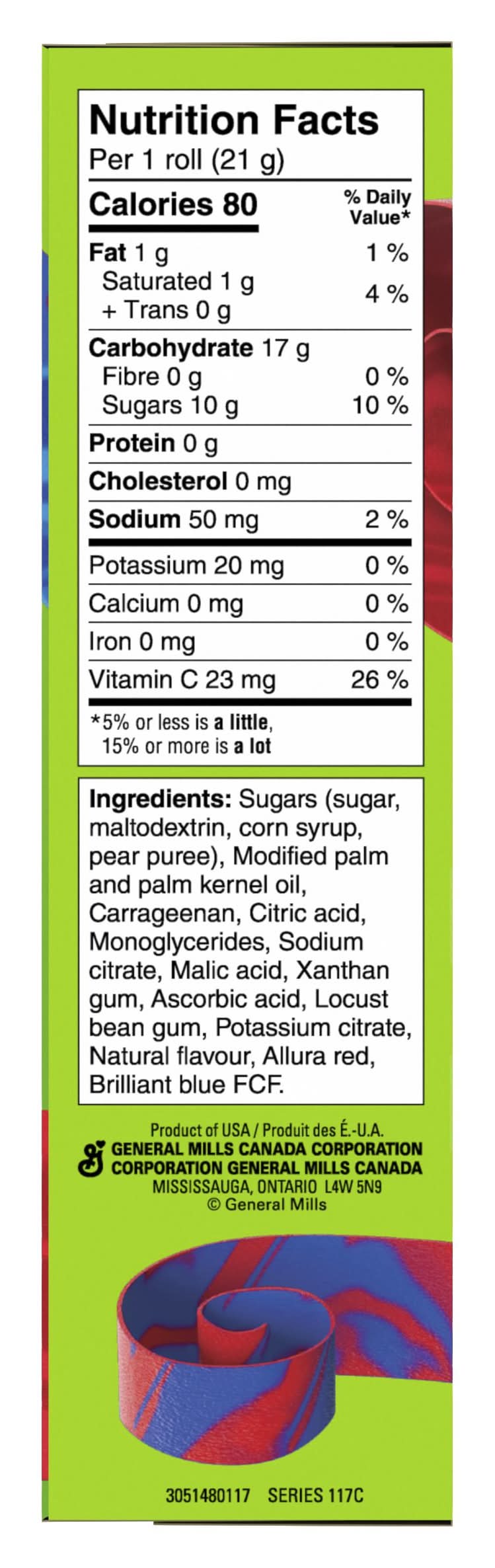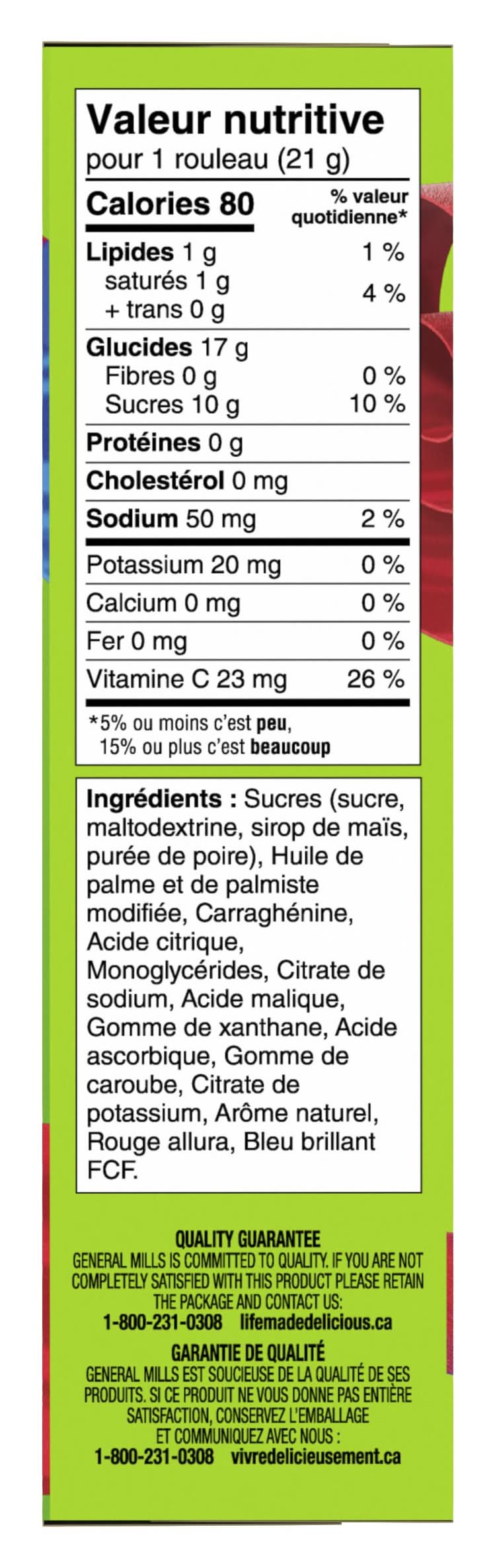 • Flavor: Strawberry-blueberry-raspberry • Size: 128 G • General Mills Canada, Retail 1 General Mills Blvd, Minneapolis, MN, 55426-1347 • Packaging: Reusable