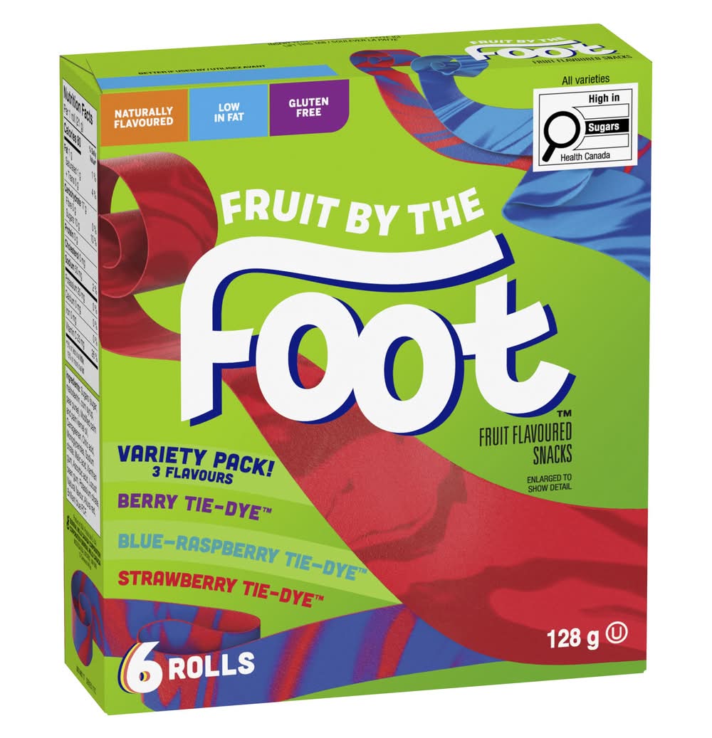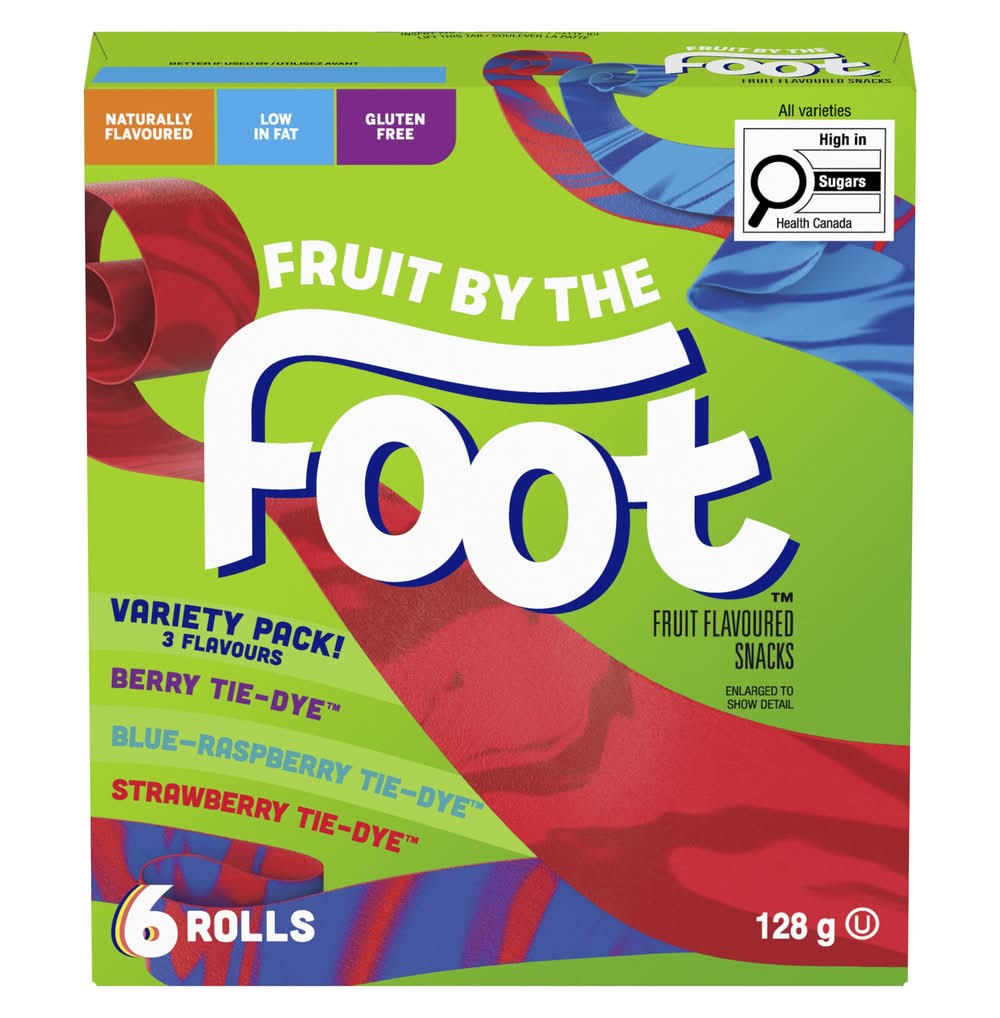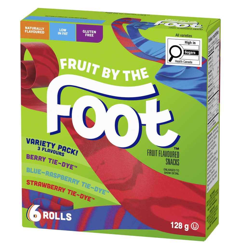 Fruit by the Foot Fruit Flavoured Snacks Variety pack, Strawberry-Blueberry-Raspberry (128 g, 6 ct)