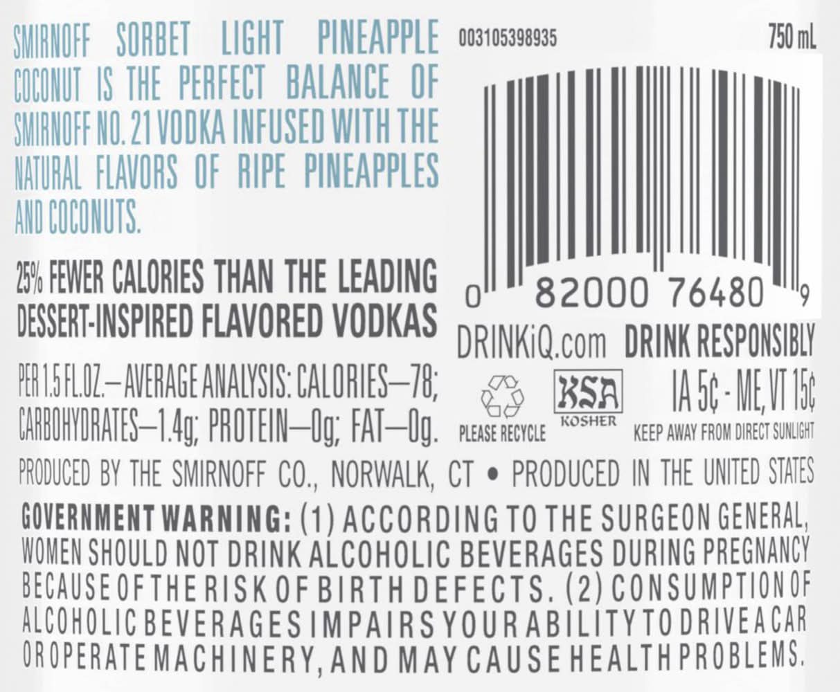 Smirnoff Sorbet Light Pineapple Coconut (750 ml)