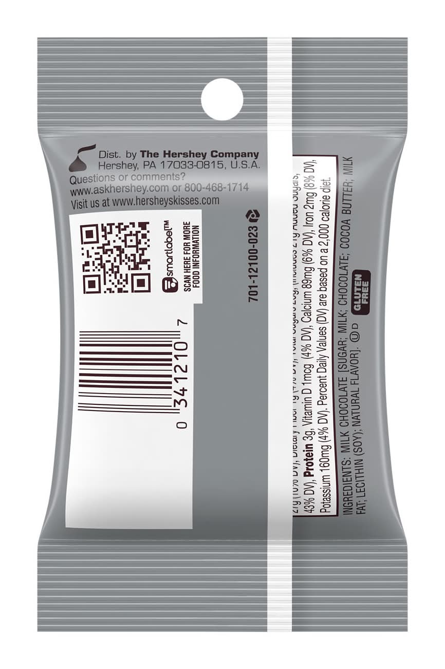 HERSHEY'S KISSES candy is a treat that'll bring smiles. Need a sweet treat to add to lunch boxes and candy bowls? Want to make your significant other feels appreciated? Looking for a delicious way to treat yourself after a long day of adulting? Whatever the case, HERSHEY'S KISSES candies is a treat you'll want to reach for every time. These classic milk chocolate treats are the perfect creamy treat throughout the day. Try some in a new dessert recipe or on top of your favorite cookie and cake treats for an extra bite of bliss your loved ones won't want to miss. Sprinkle a few HERSHEY'S KISSES candies over your homemade ice cream sundaes, or place them in party favors to delight guests with stunning foil wrappers and even more stunning flavor. These treats are perfect as stocking stuffers at Christmas, party favor filling during Valentine's Day, trick or treat candy at Halloween and basket sweets on Easter. Just don't forget to hang onto a few bite size milk chocolates to include in your movie night snack selection and on the go trips. Try them chilled, on top of baked desserts and, of course, straight from the wrapper — any choice is a route straight to delicious! Number of servings: 1