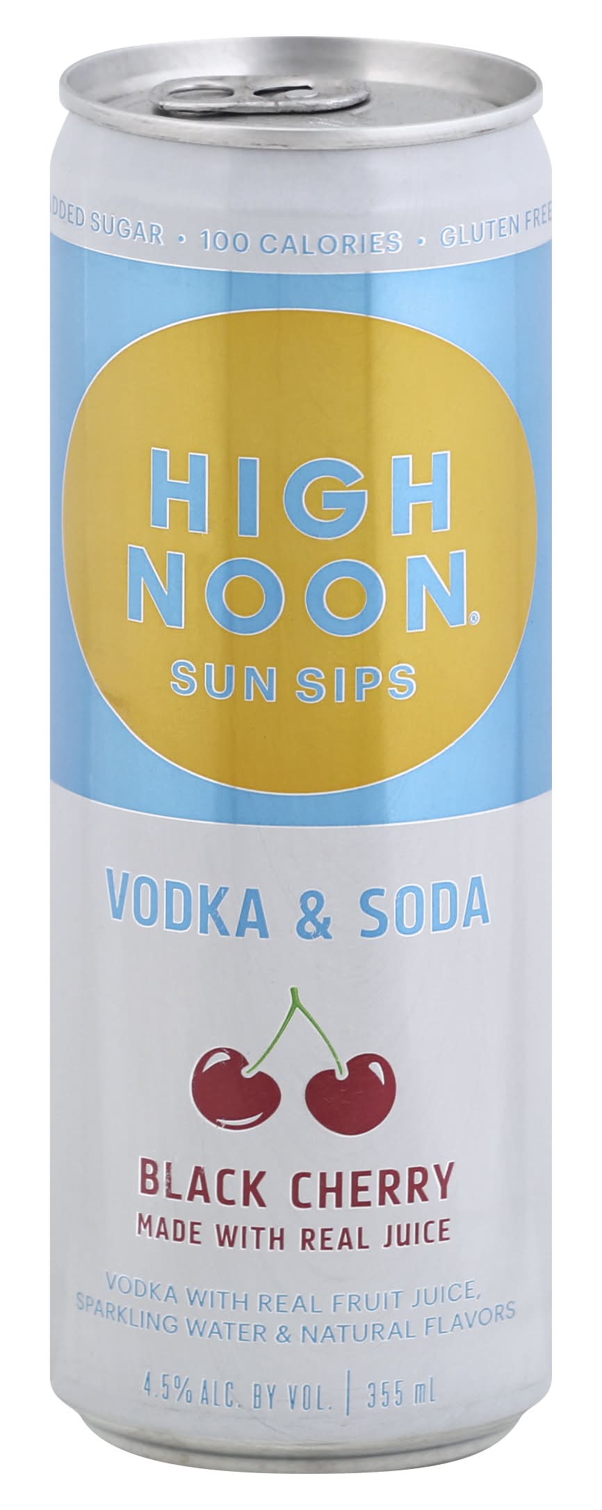 High Noon Sun Sips Vodka Soda With Real Fruit Juice Hard Seltzer, Black Cherry (4 x 12 fl oz)