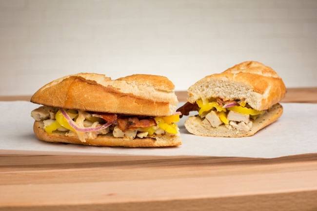 Sliced Chicken, Crispy Bacon, House Blend Cheese, topped with Banana Pepper Rings, Sliced Red Onions, and our Spicy Ranch Dressing. The legend has become reality.