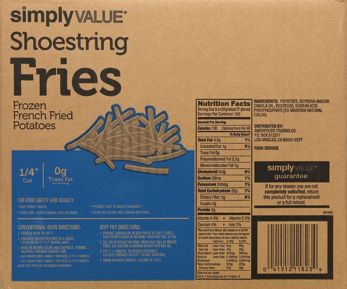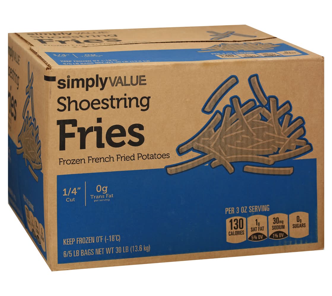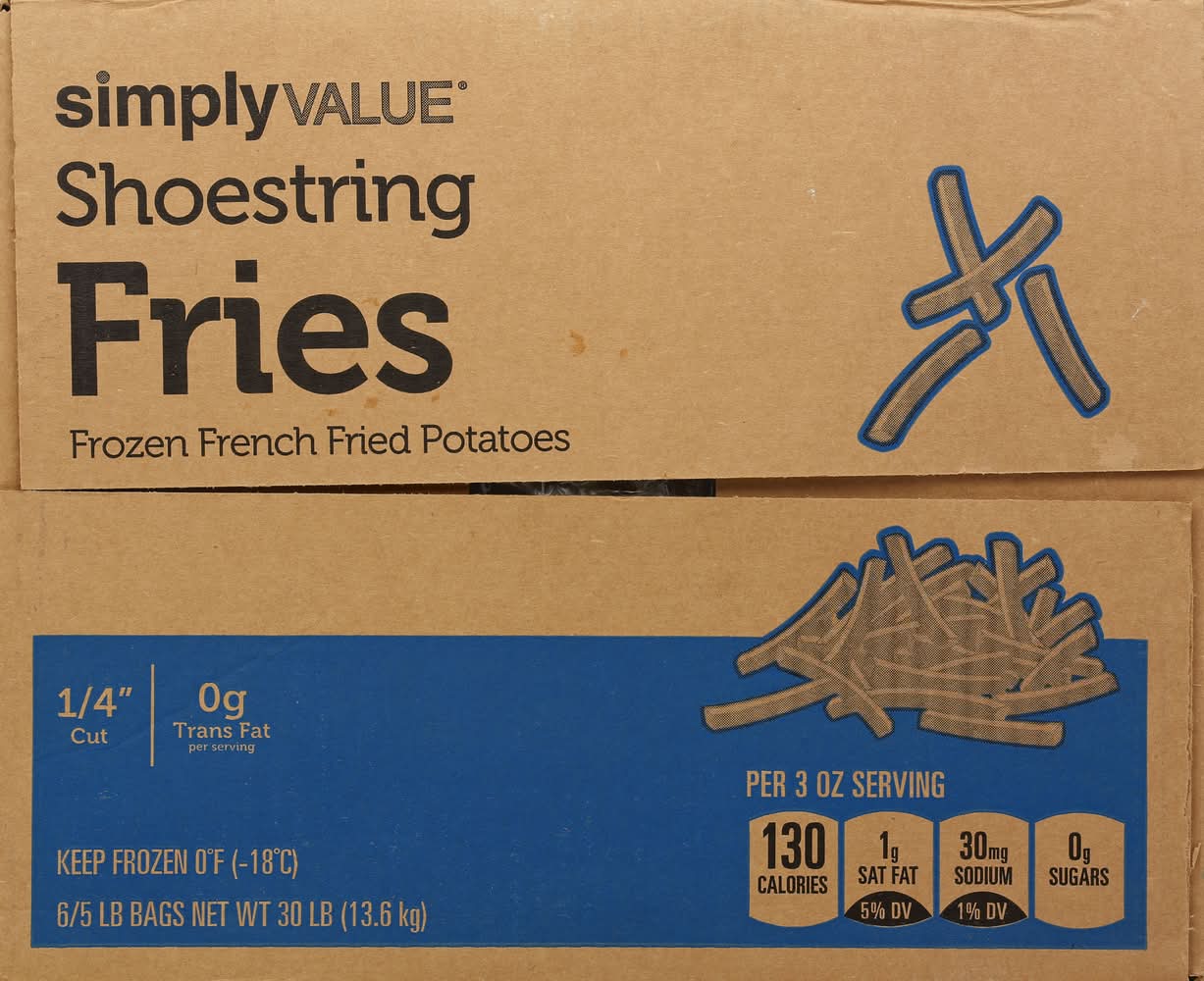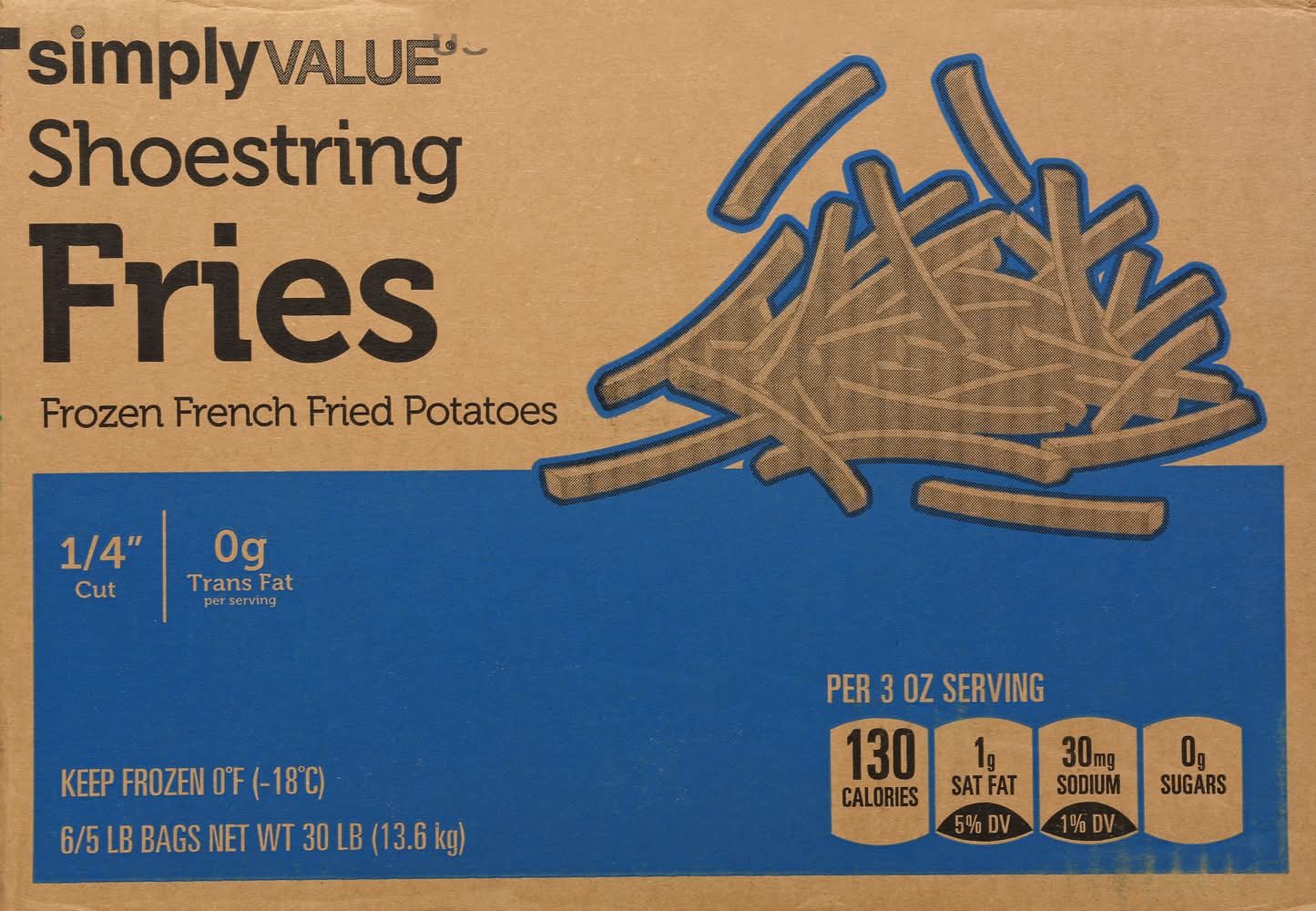 Simply Value Shoestring Fries Frozen French Fried Potatoes Bags (30 lbs, 6 ct)